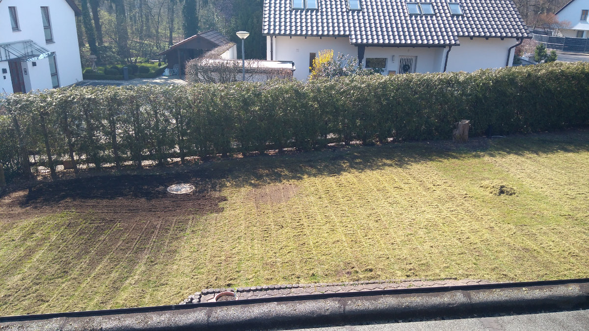 Ende März wurde der ganze Rasen vertikutiert.