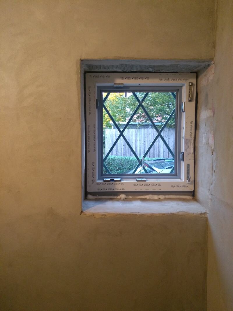 Vor kurzem kam noch die Fensterbank, sodass nun der fehlende Putz innen noch ran kann.