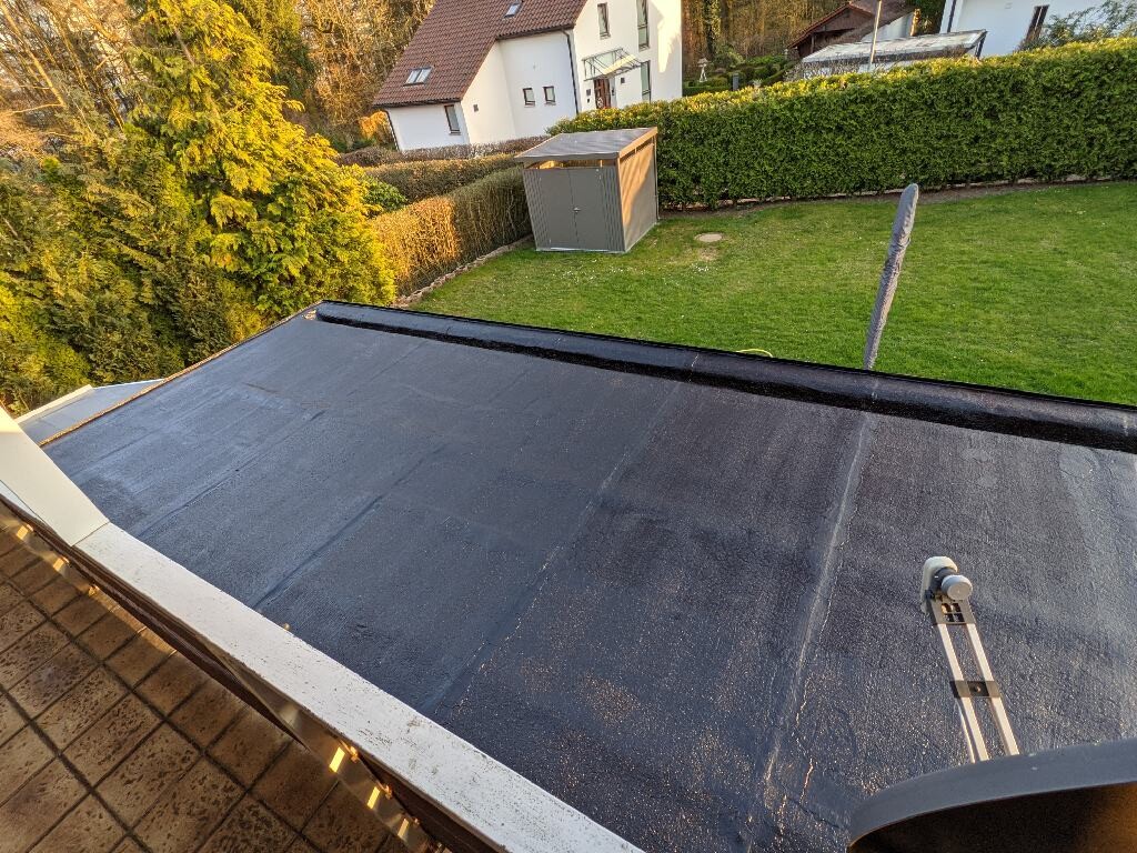 Zweite Bitumenschicht ist aufgetragen und damit sollte das Dach erstmal dicht sein.
