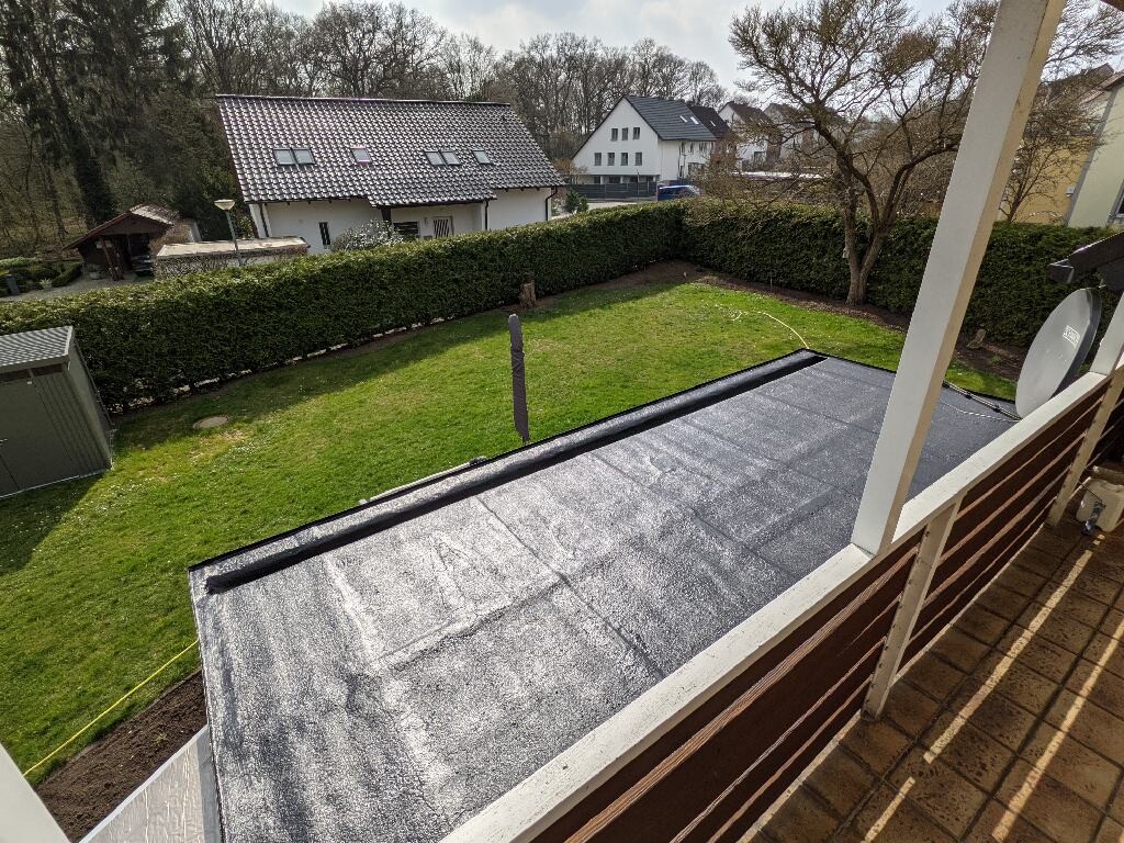 Erste Bitumenschicht aufgetragen. Schon sind 70€ weg für die Wintergarten-Dachsanierung. Großteil der Kosten werden dann Dämmstoff und Deckenpaneele sein.