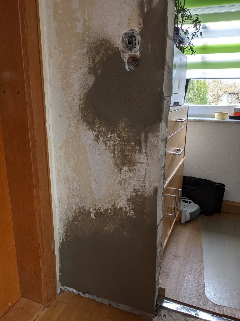 Kleinere Putzarbeiten wo Halterungen einer Heizung auf der anderen Wandseite eingebracht waren.