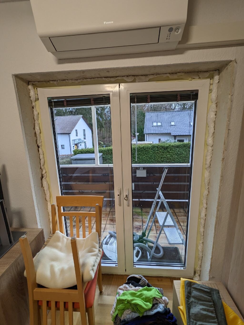 Die Balkontür war nur von Innen mit Silikon abgedichtet. Außen der alte Blechrahmen über dem Spalt von Rahmen und Mauerwerk. Aber dazwischen nichts. Nicht einmal Bauschaum. Deswegen bildet sich an der Wärmebrücke etwas Schimmel.