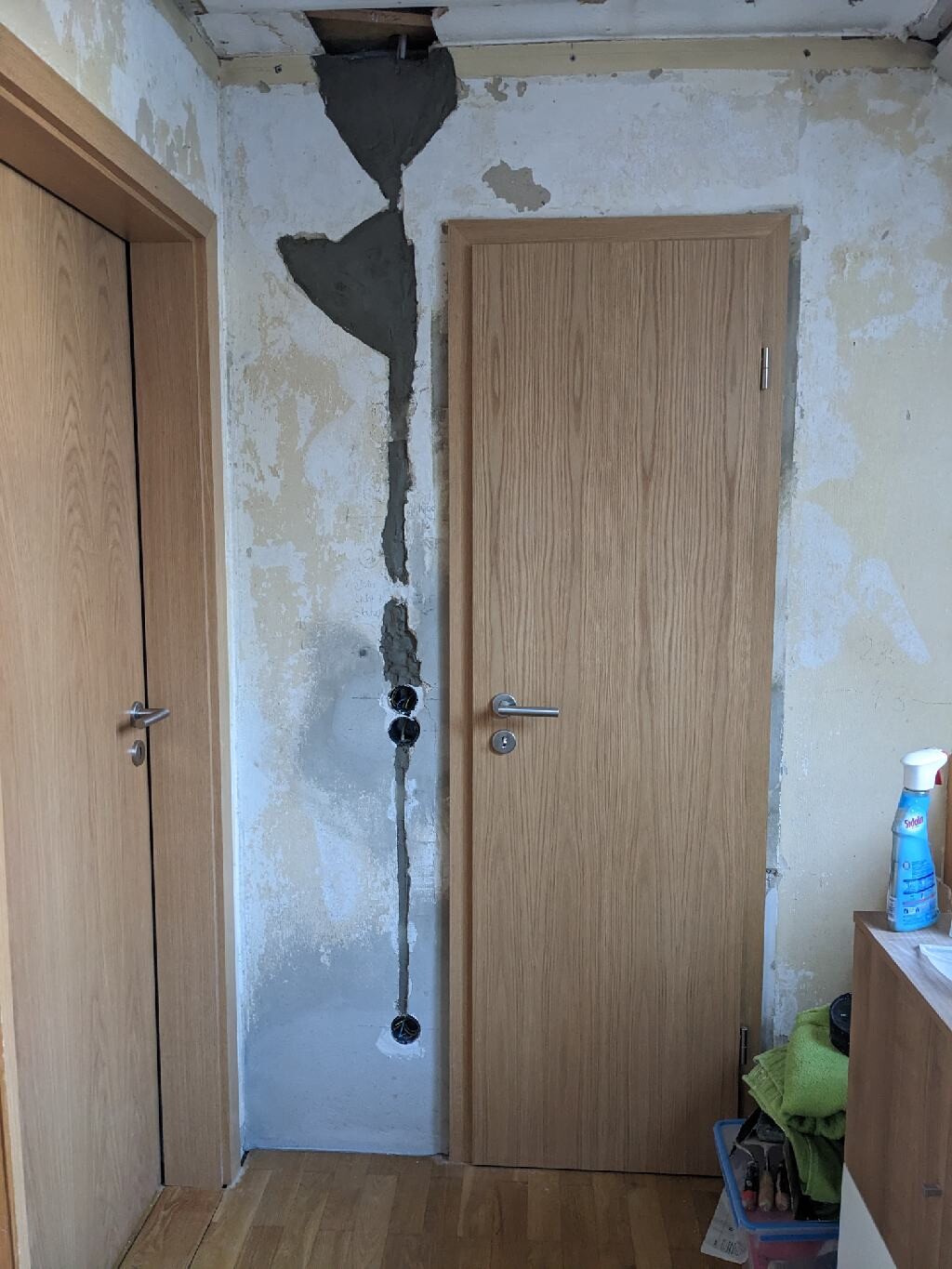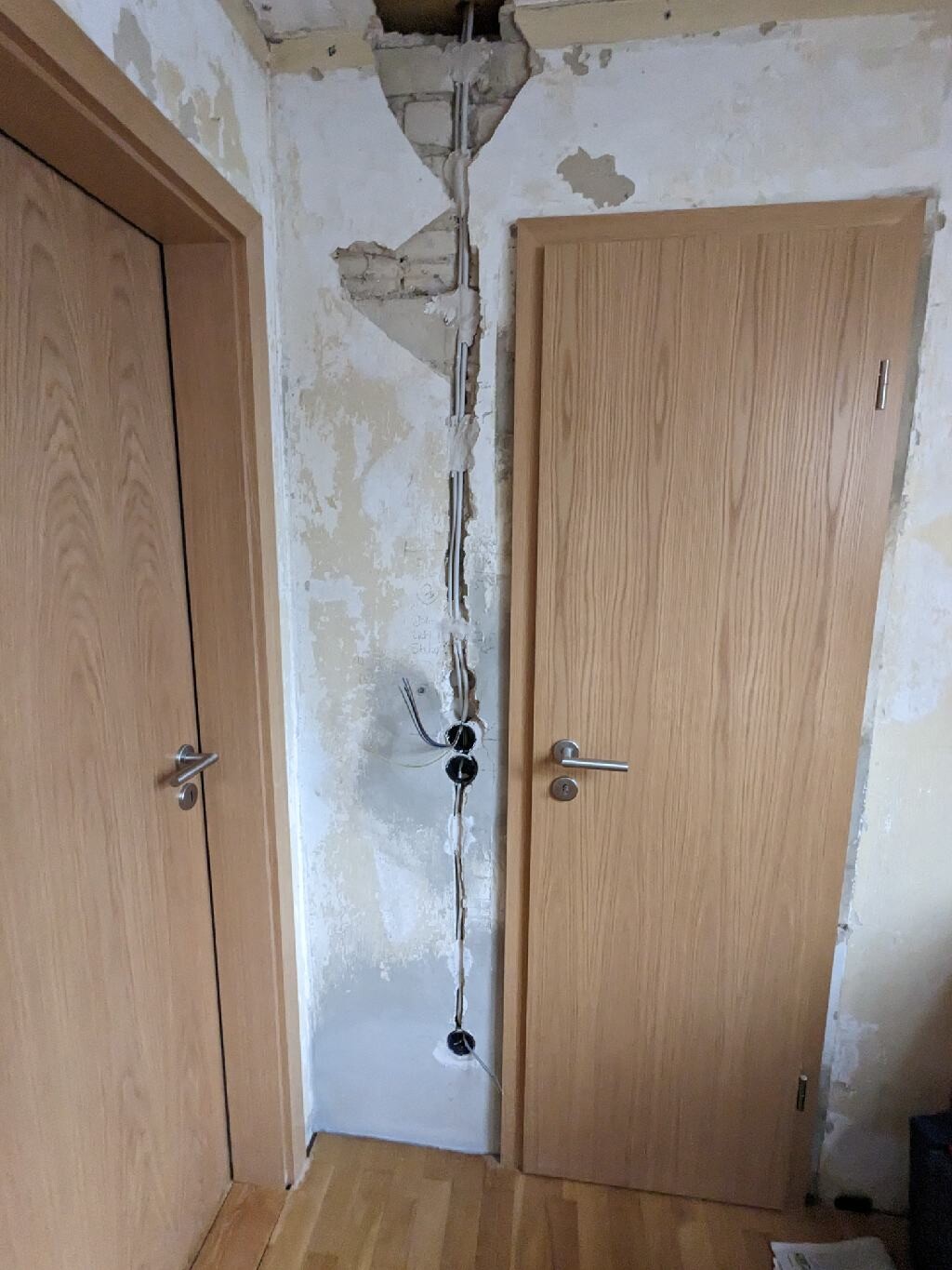 Inzwischen ist es verputzt, verkabelt und alle Provisorien wieder entfernt.