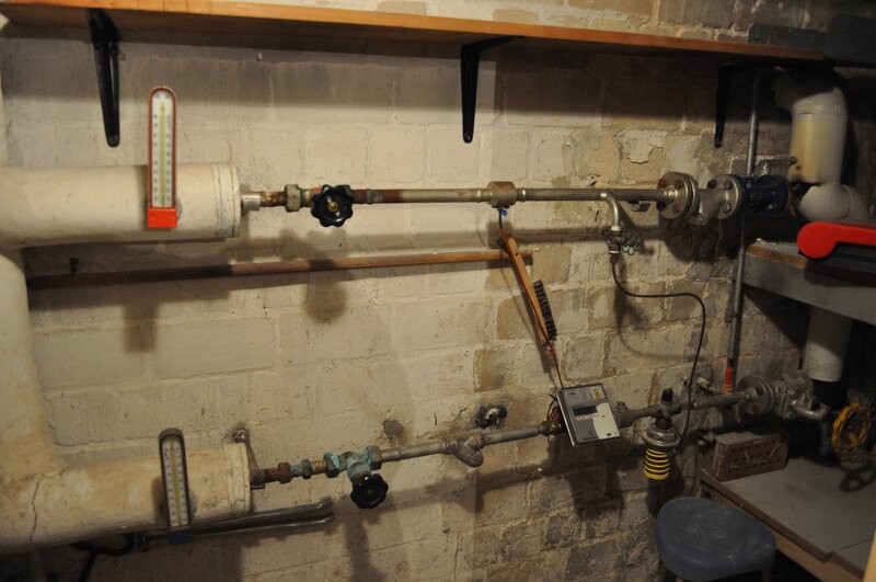 Ein kleiner Heizungsraum. Hier kommt die Fernwärme rein, mit 10 bar und 100°C direkt ohne Wärmetauscher angeschlossen an die Heizkörper.