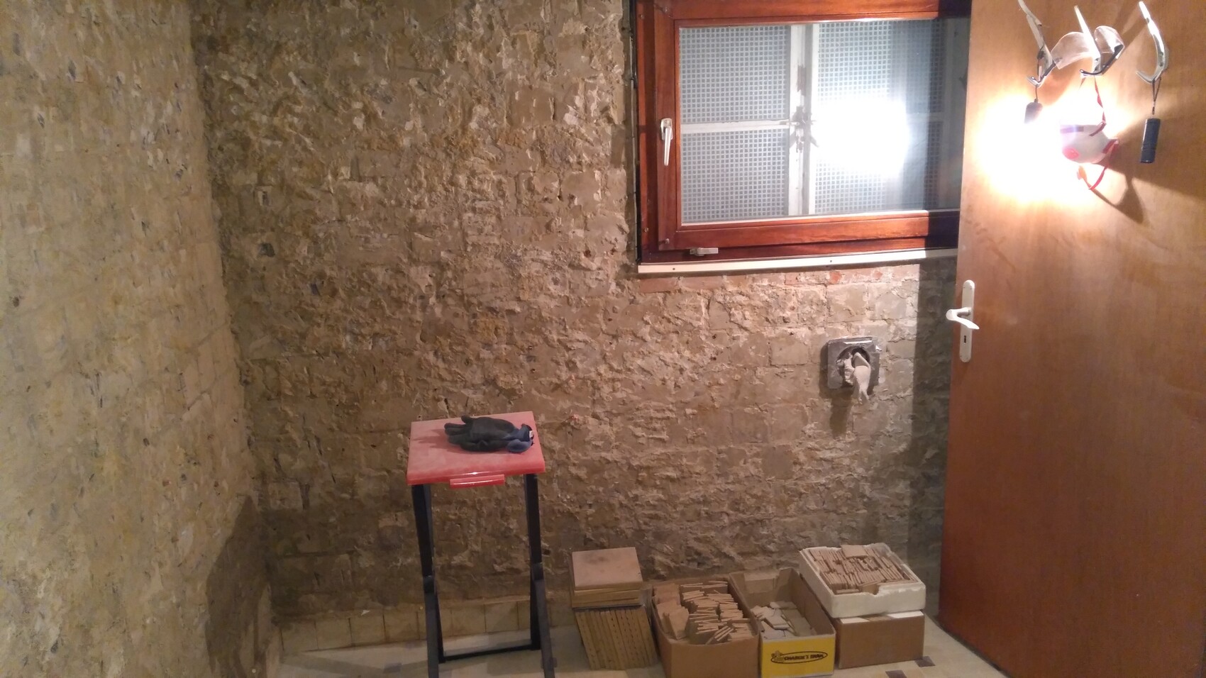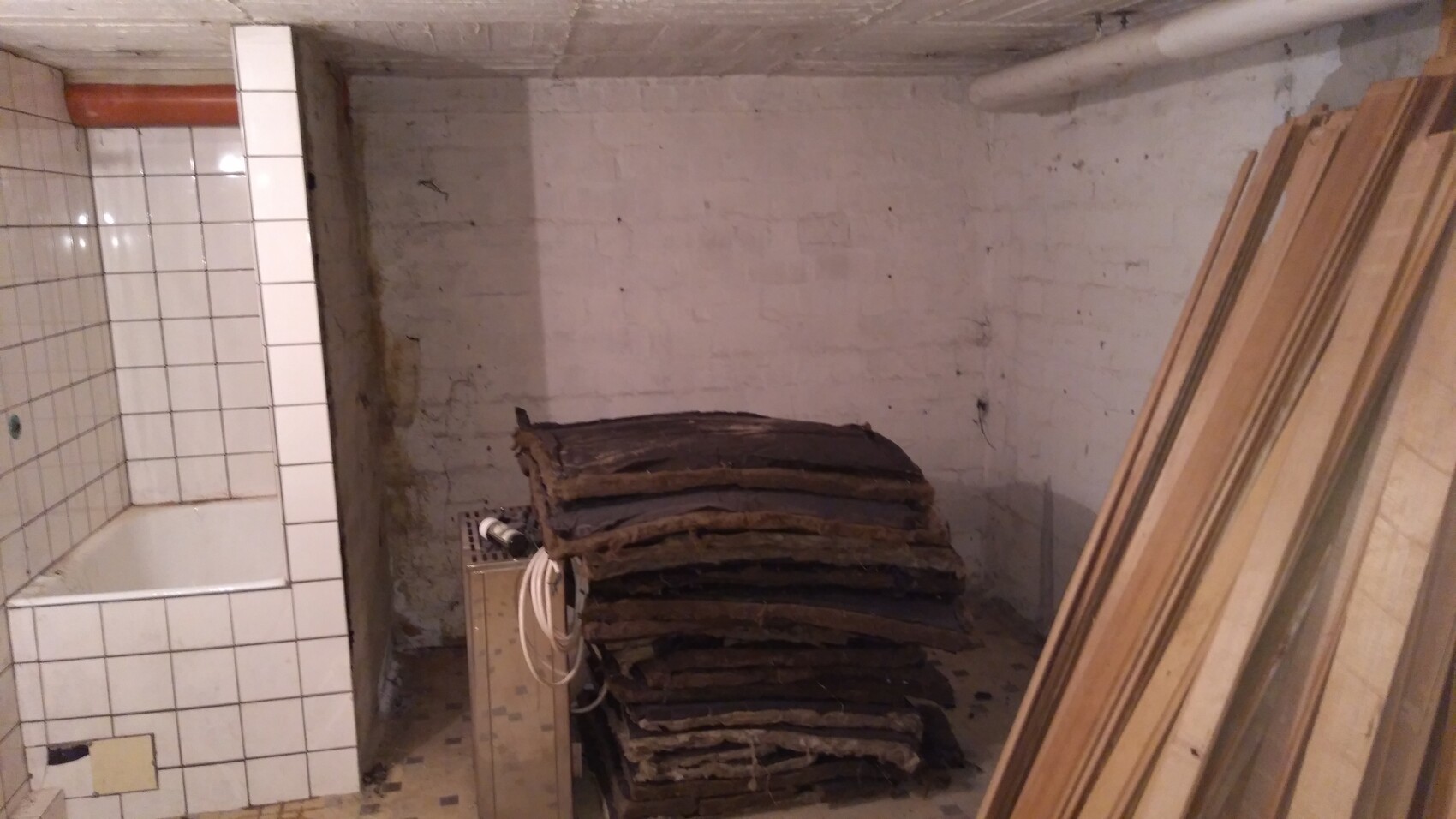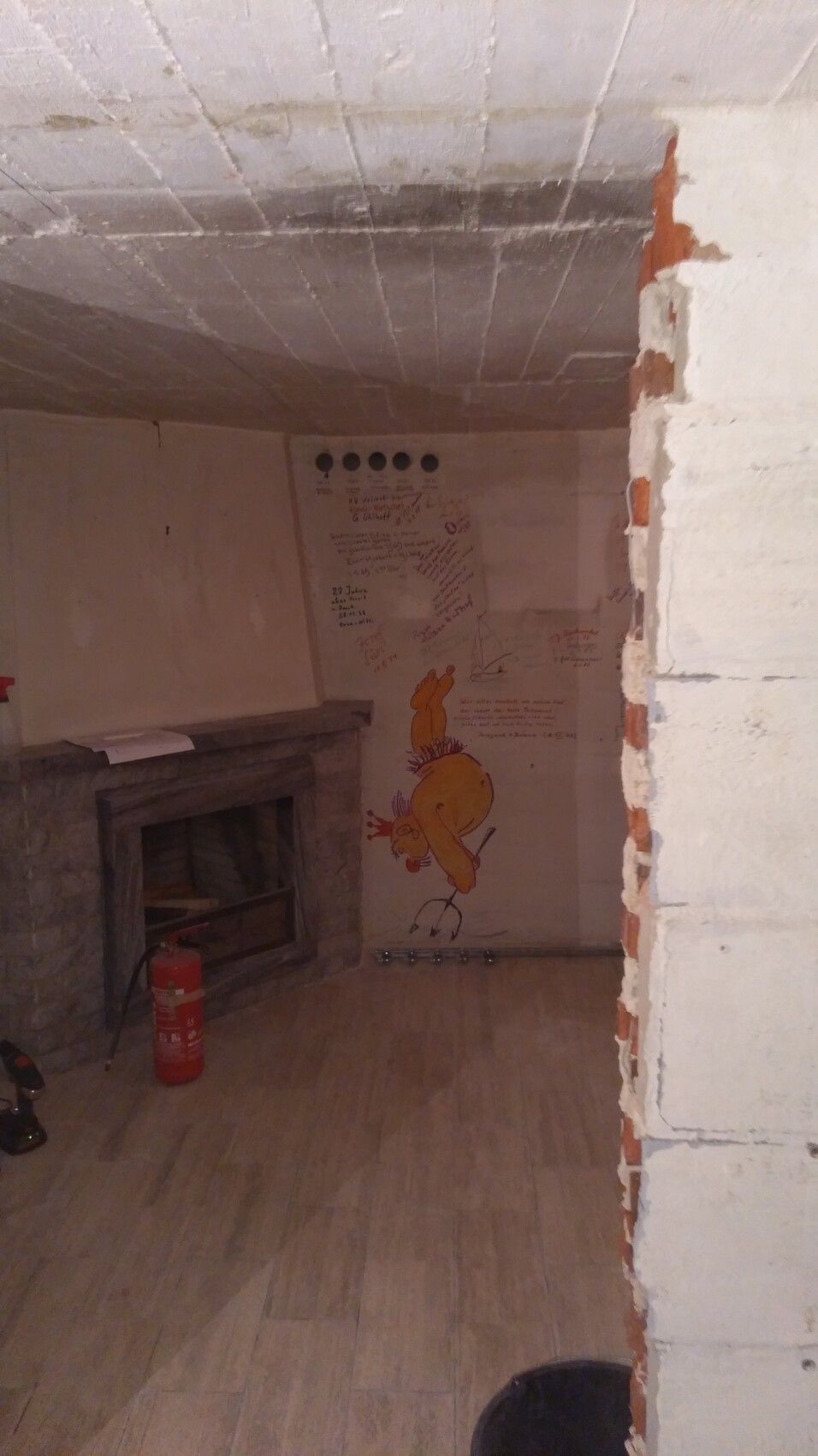 LordNibbler27.11.19 10:23Nun mal ein Blick in den Keller, Ausgangszustand. Es gibt 5 Räume: Flur, "Heizung", Kaminzimmer (mit Abstellecke), Waschküche, Saunaraum.