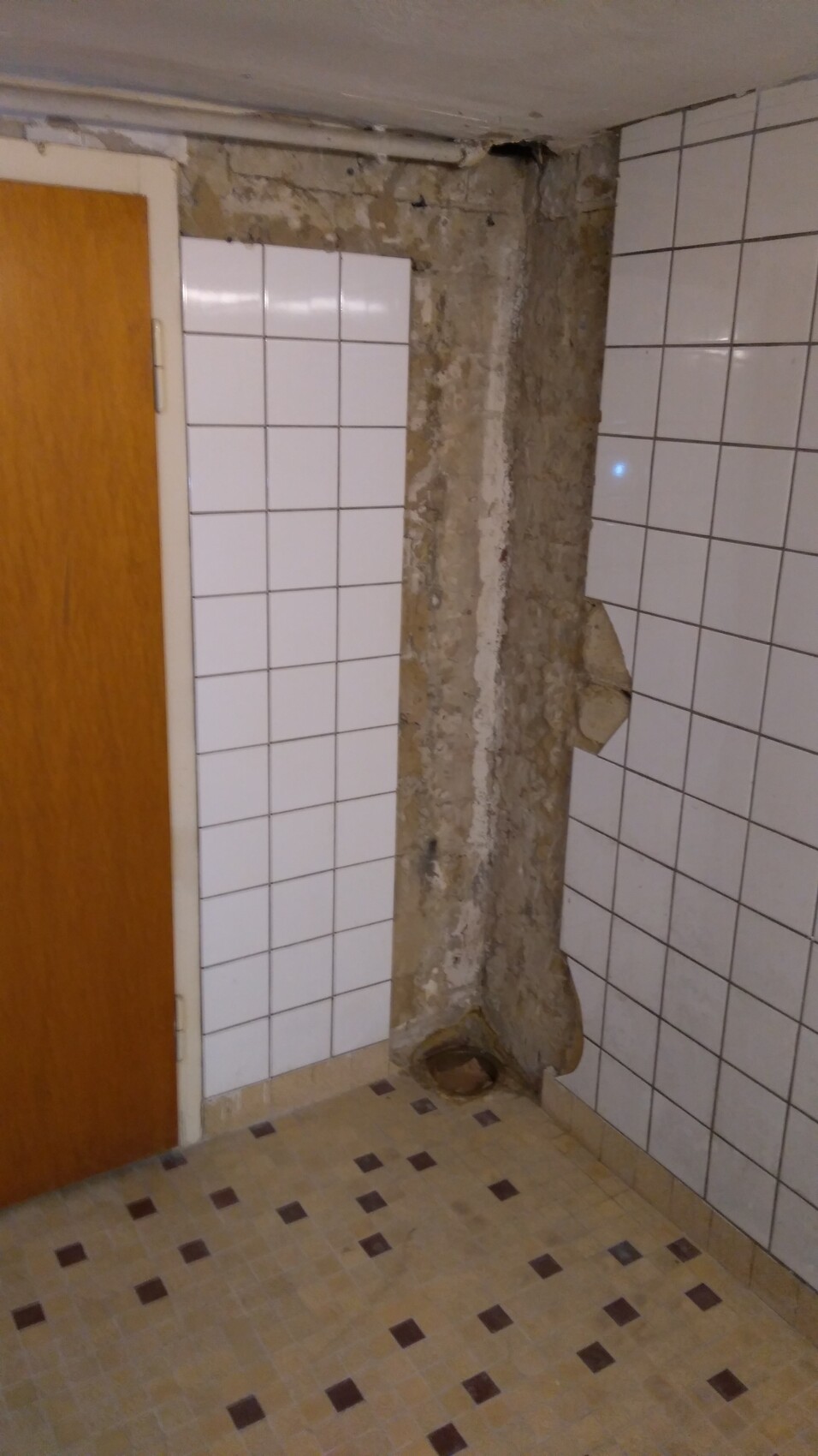 "Befreiung" von Wand uns Abwasserrohr in der Waschküche von den Fliesen: