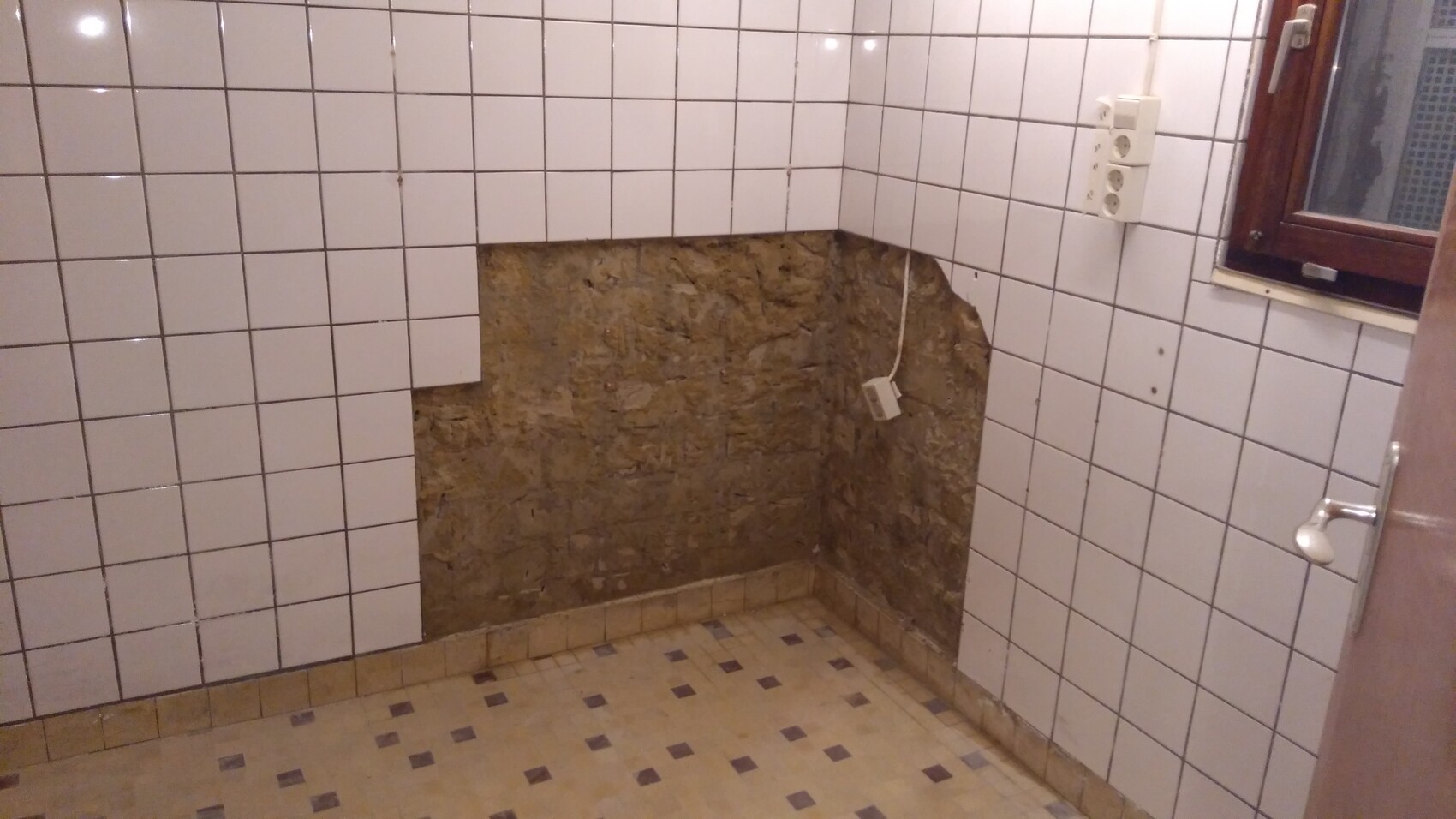 Die feuchte Ecke wird zur weiteren Begutachtung von den Fliesen befreit: