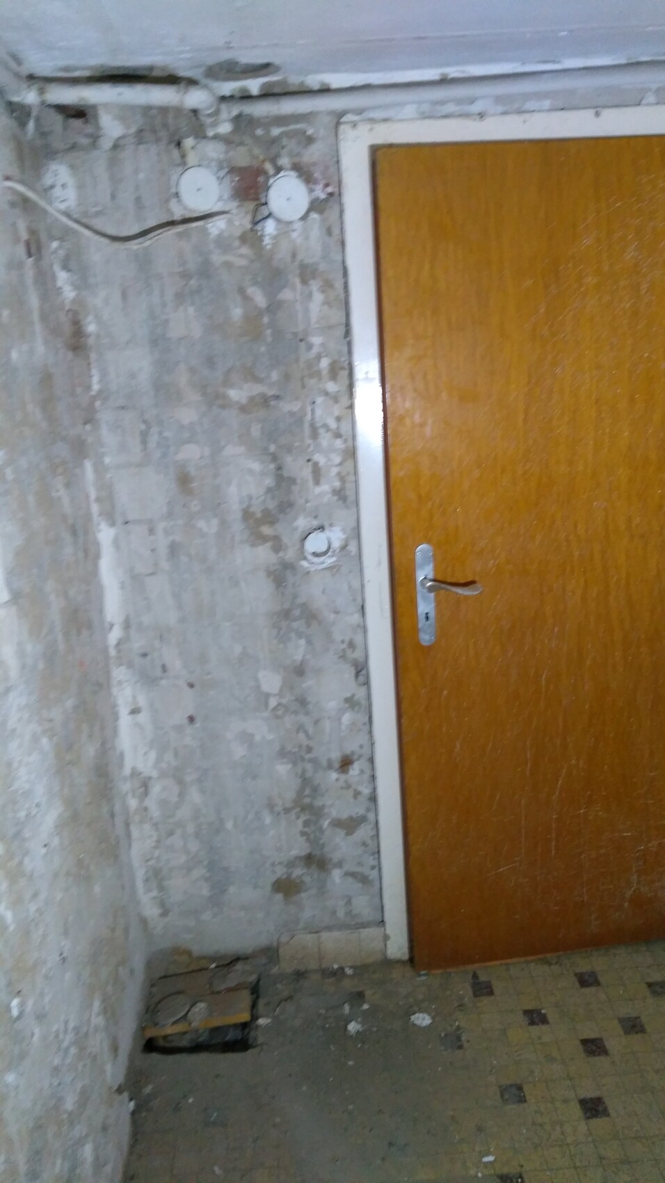 Ein muffiger Raum. Die Gipswände scheinen Probleme zu machen, also alles raus am Tag der Besitzübergabe: