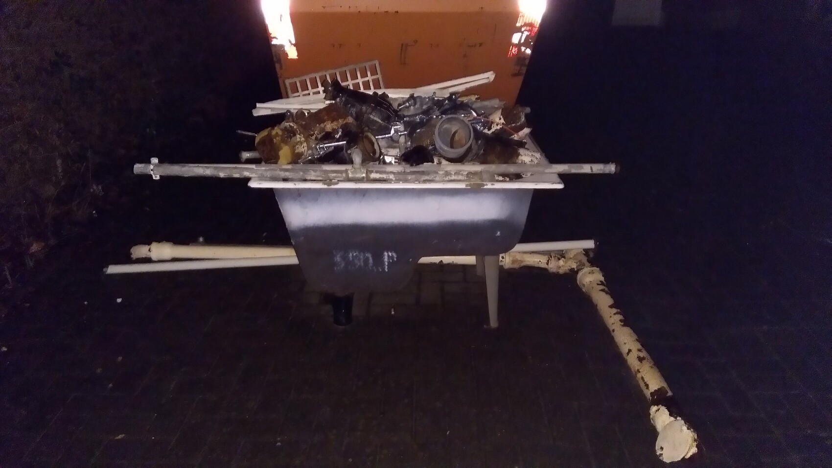 Passend ein Zettel für kostenlose Schrottabholung im Briefkasten gehabt. Kein Problem, den Kellerabfall möchte in nicht im Kofferraum haben und die Wanne ist weg: