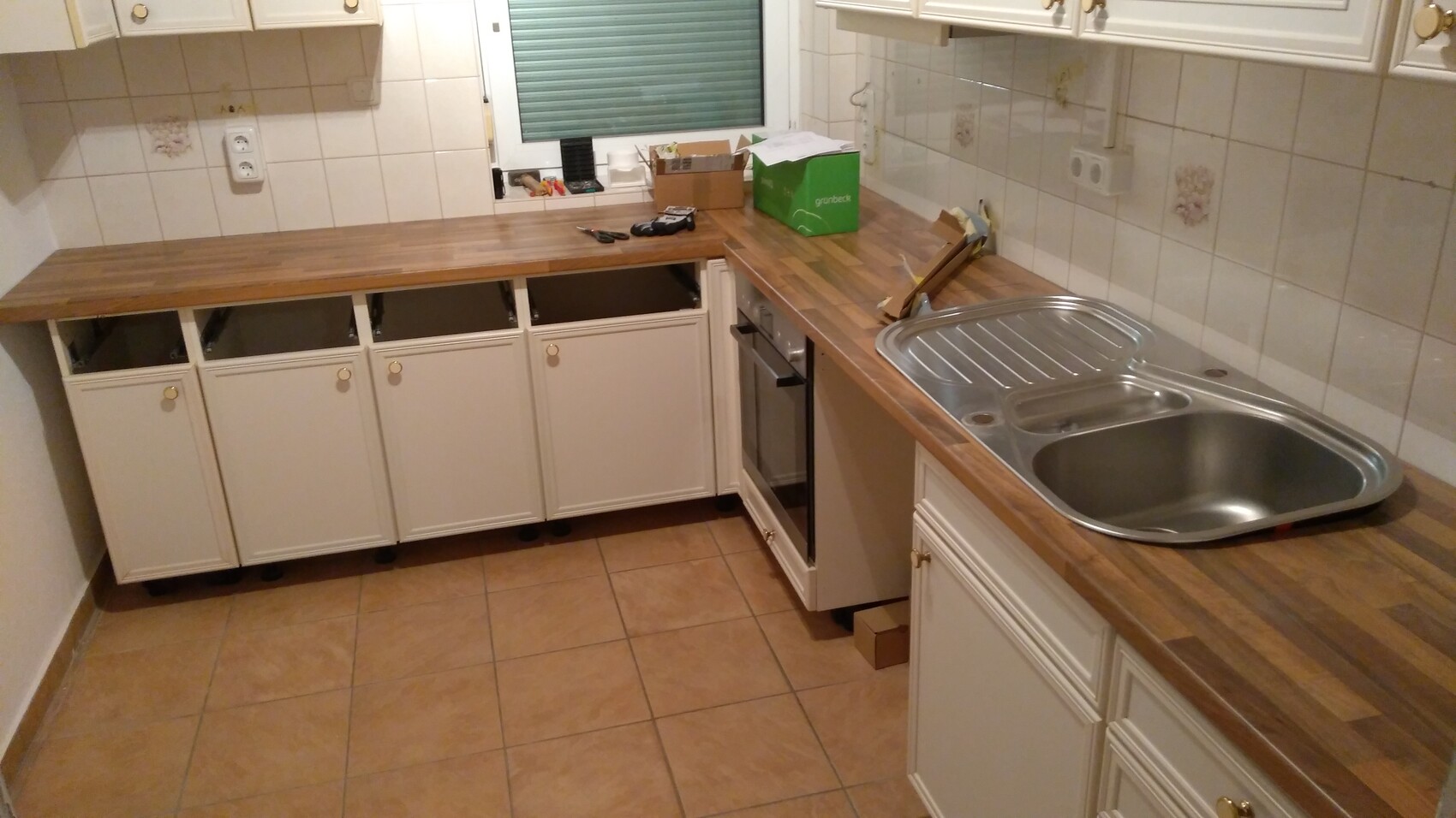 Durch die reduzierte Raumgröße haben wir die möbel neu angeordnet, einen schrank entsorgt und eine neue Arbeitsplatte eingebaut.