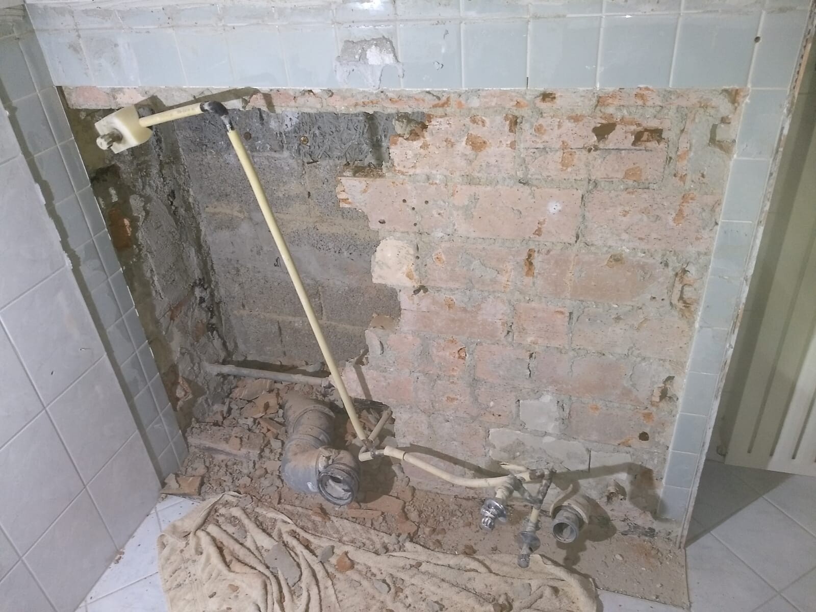 Kernsanierung von Bad und Küche hätte schon die neue Heizung und Elektrik installiert sein müssen.