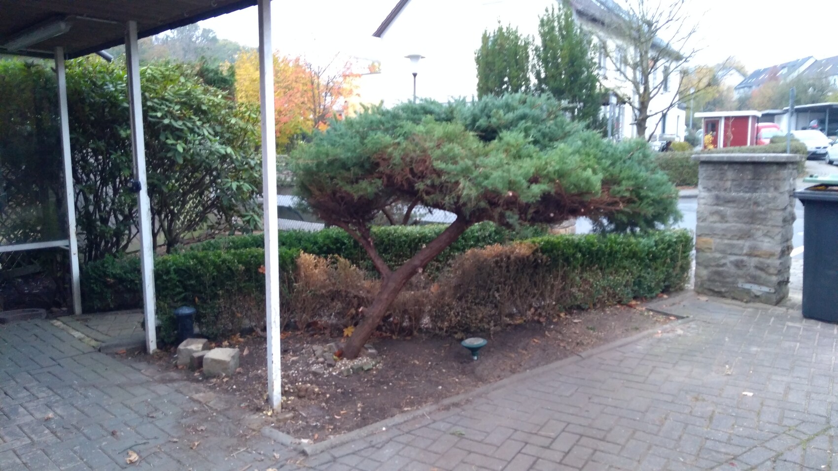 Also angefangen Wege freizuschneiden, Gebüsche auszudünnen, Hecke zu schneiden, "Rasen" zu mähen: