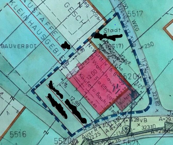 Baufenster, Baulinie und –grenze – kein Problem, da Bestandsgebäude mit genehmigten Ausnahmen