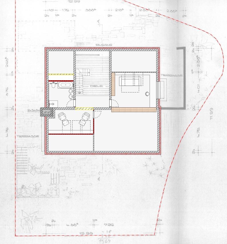 Die Begrifflichkeiten werden in der Diskussion für Verwirrung sorgen, ein UG - ibs. wenn der Eingang im Geschoss darüber liegt - würde ich nicht als EG bezeichnen; auch wundert mich die Darstellung des "EG alt" mit Lichtschächten und des "EG neu" wie ebenerdig - soll das Gelände um das Haus herum verändert werden ? - und der Öltankraum wird dabei abgebrochen ? - eine Ergänzung um Schnitte könnte erhellen.