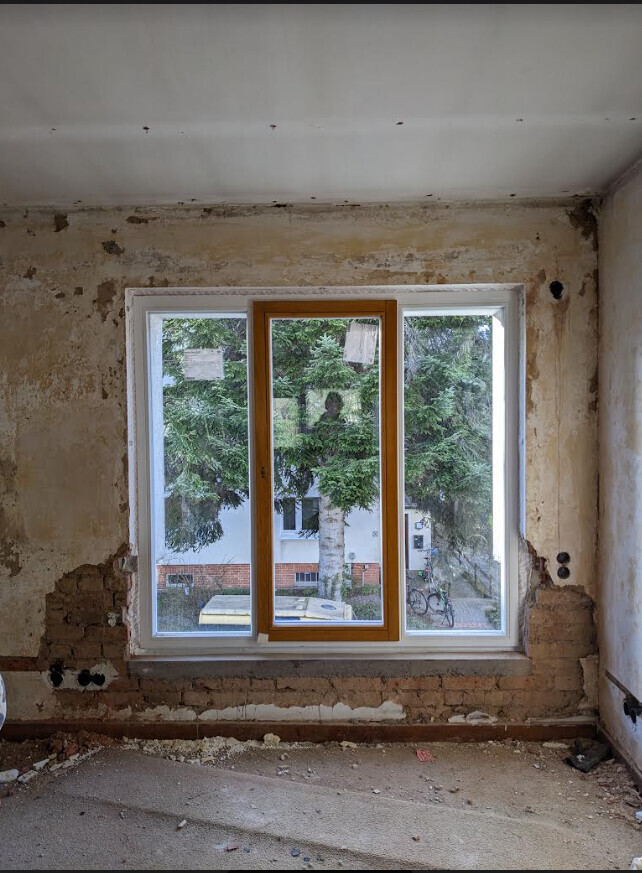 Beim Putz wissen wir es noch nicht ganz genau. Im EG ist nicht mehr wirklich viel alter Putz vorhanden, da kommt auf jeden Fall komplett neuer drauf. Bin ich auch nicht wirklich traurig drum, da unten ja vom Mieter sehr viel geraucht wurde und der Geruch auf jeden Fall raus muss.