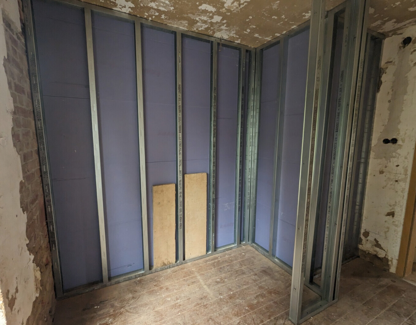 Erstmal war der Trockenbauer wie vereinbart da und hat unsere neuen Bäder gebaut, bzw deren Wände.