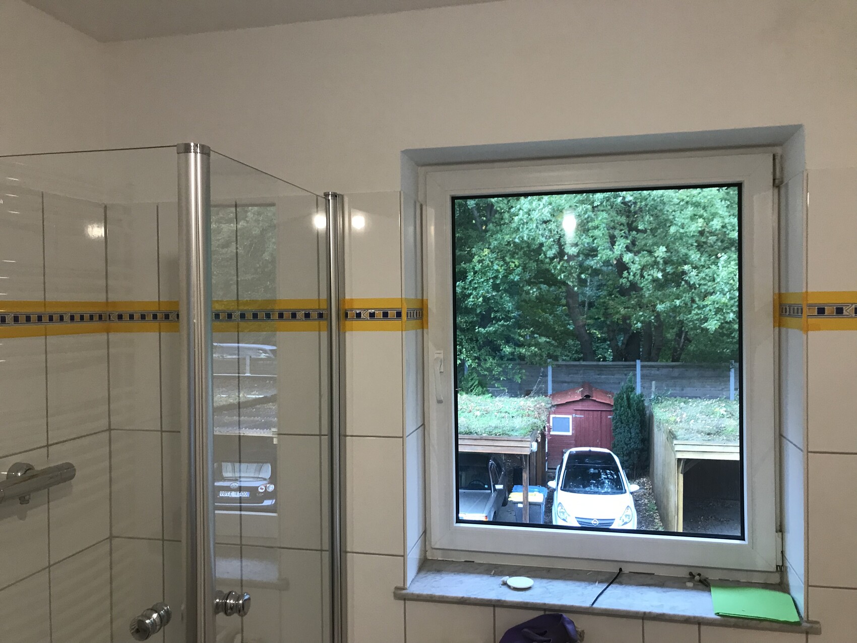 Unser Bad im OG ist noch soweit okay, nur gefielen uns die Bodenfliesen in Terracotta nicht. Was haben wir gemacht?