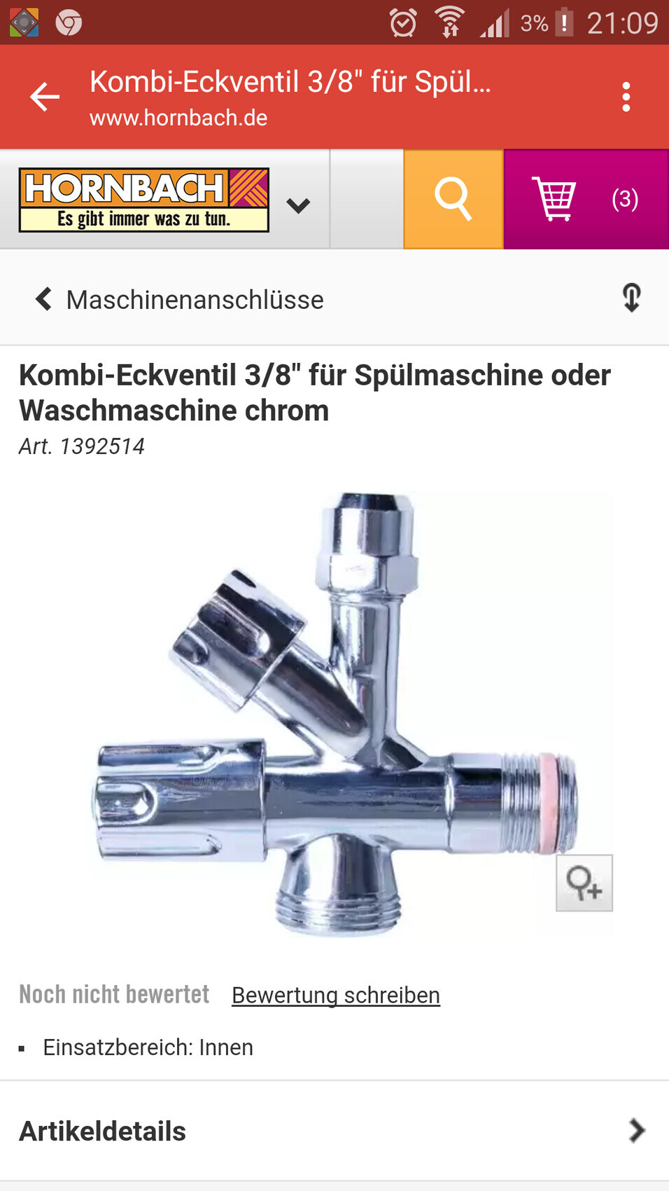 Das ist das richtige! Wird direkt in die wand geschraubt ober der Frischwasser Zulauf für den Wasserhahn und der Geschirrspüler.