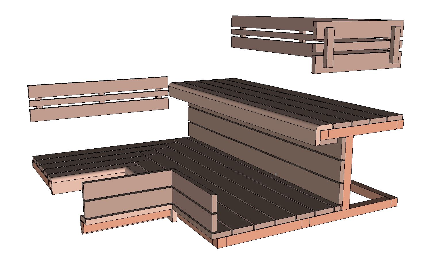 Dafür haben wir die Rückenlehne an der linken Seite geplant. Dort wird man auch meist sitzeny da nur von dort der Blick ins Freie möglich ist.