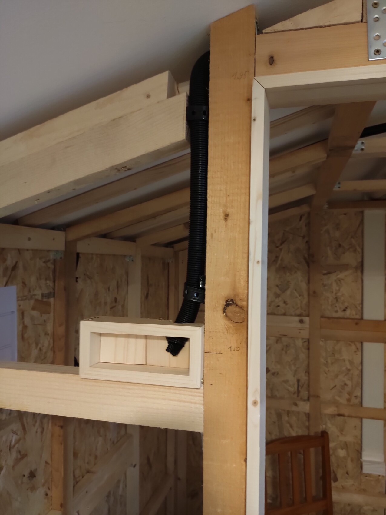 Die Kleinigkeiten haben mich nochmal ganz schön aufgehalten, am meisten gefordert hat mich dabei der kleine Kasten für das Bedientableau. Die Idee kam mir gestern Abend, dass ich ja aus den Resten des Laibungsholzes eine solche Aufnahme basteln könnte.