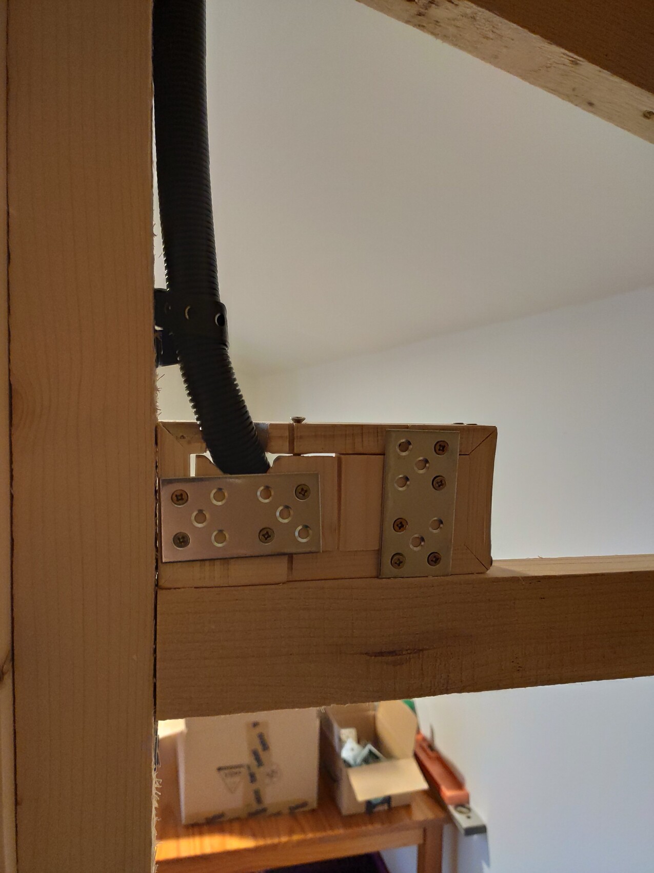 Während ich die Zeilen so schreibe, fällt mir gerade ein, dass der Rahmen doch noch nicht fertig ist. Ich habe die Halterung für den Deckenspot überm Ofen vergessen... 😀