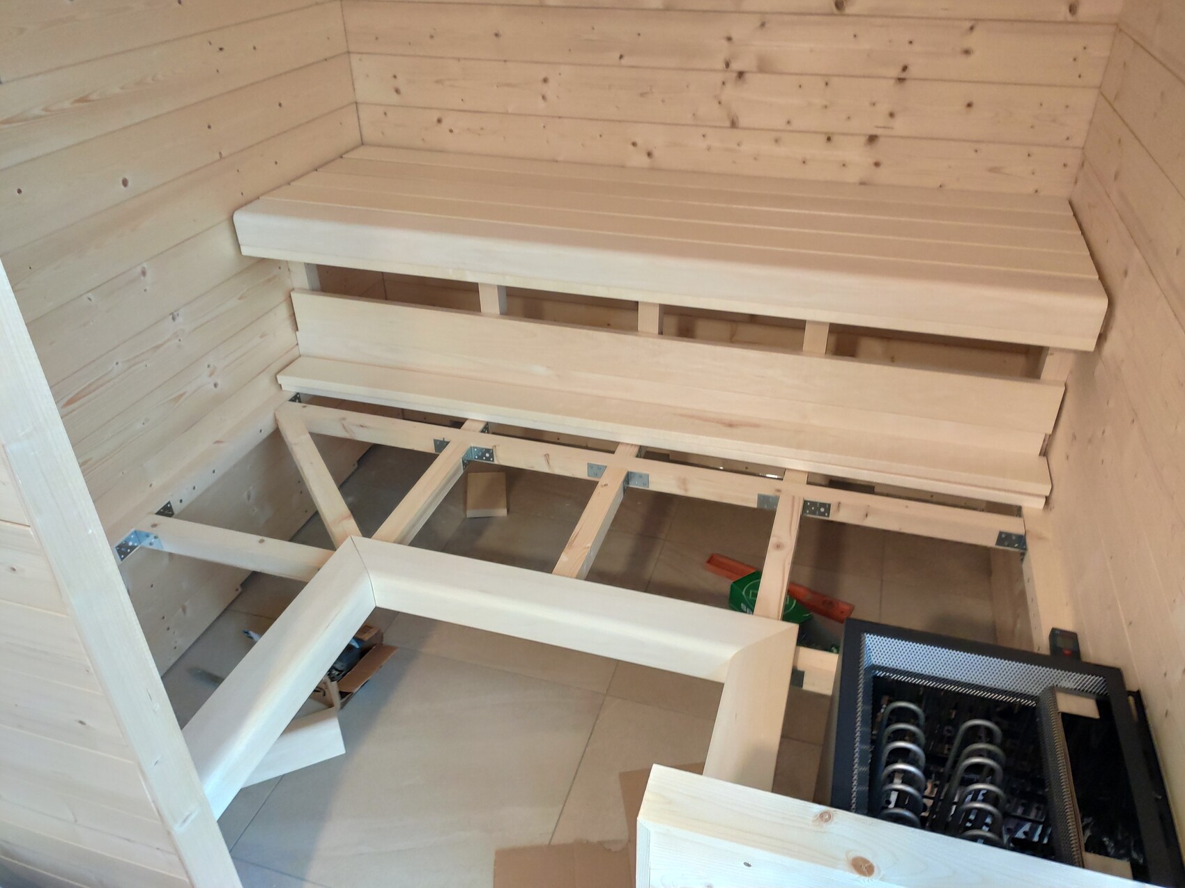 Am Wochenende will ich die restlichen Banklatten schneiden und Verschrauben, dann kommt die Beleuchtung und Steuerung.