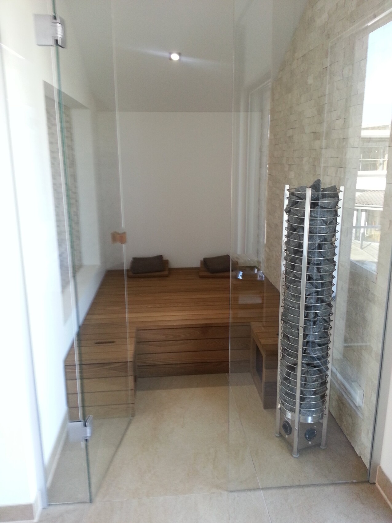 Wir haben die Idee der Liegefläche aus einem Musterhaus mit genommen. Dort war auch ein toller Saunaofen für kleine Saunen, wenn man wenig Stellfläche hat: