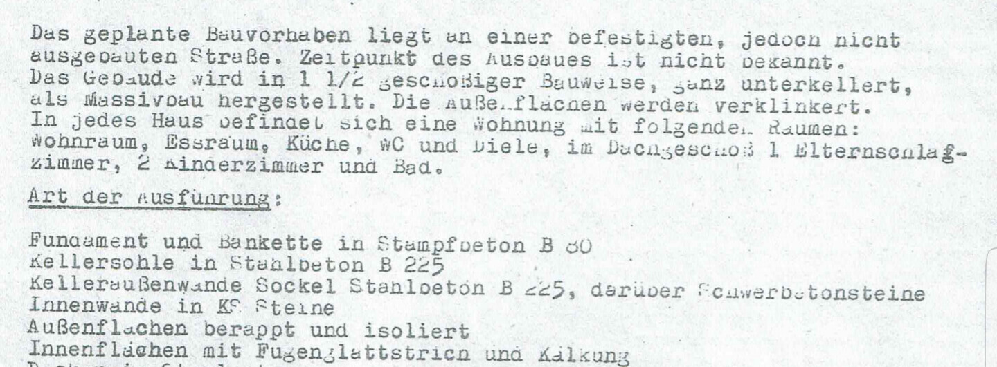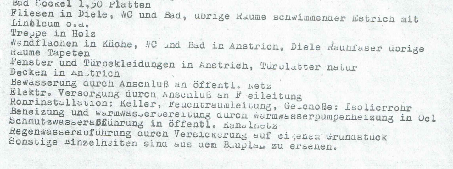 Laut den original Architektenplänen ist die Wand zwischen beide Doppelhaushälften 24cm dick. Auf dem Boden wurde schwimmender Estrich verlegt.