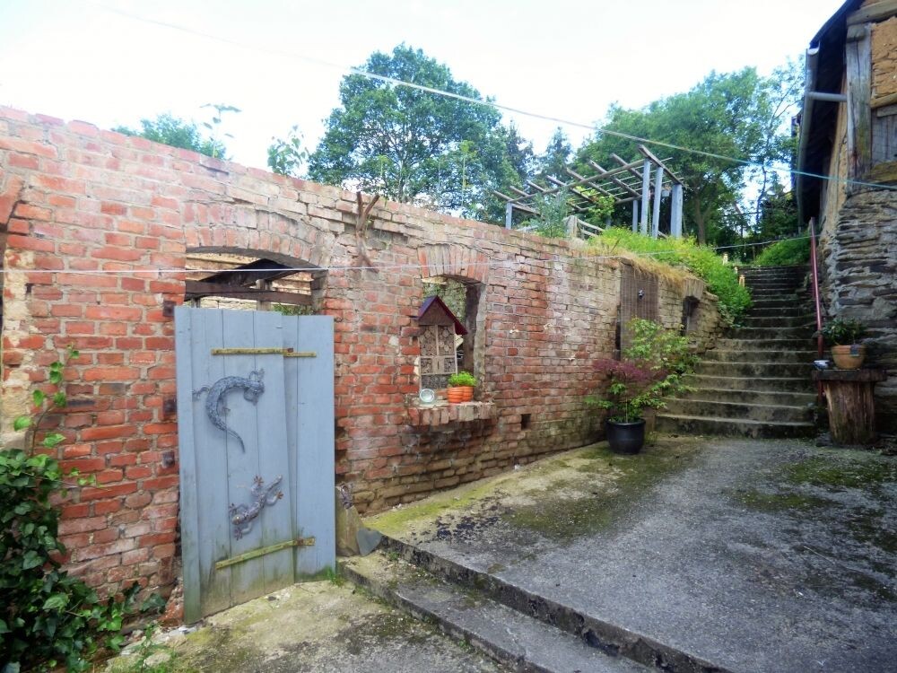 Lediglich das Dach könnte man mal machen. Die Bilder Zeigen zum einem den Blick auf die Grundmauer vom angerissen Teil, den Blick vom Garten/Hang runter zur Scheune.