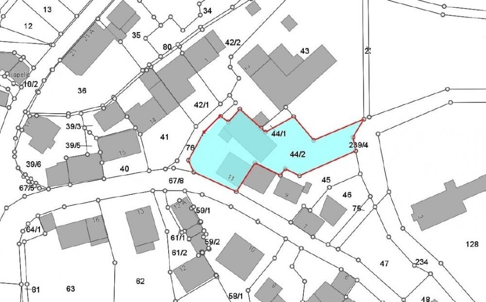 Die Fläche vor 44/1 ist die alte Scheue die in den Hang geht, aber selber ebenerdig ist.