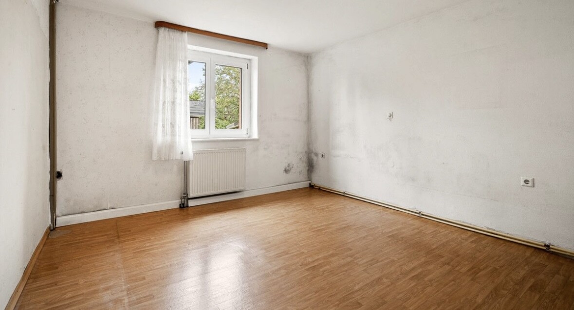 Im ehemaligen Schlafzimmer ist recht viel Schimmel zu sehen. Da das Haus jetzt 2 Jahre leer steht und der Bewohner verstorben ist, können mir die Erben nichts dazu sagen. Das Dach ist dicht und das Haus ist nicht unterkellert.