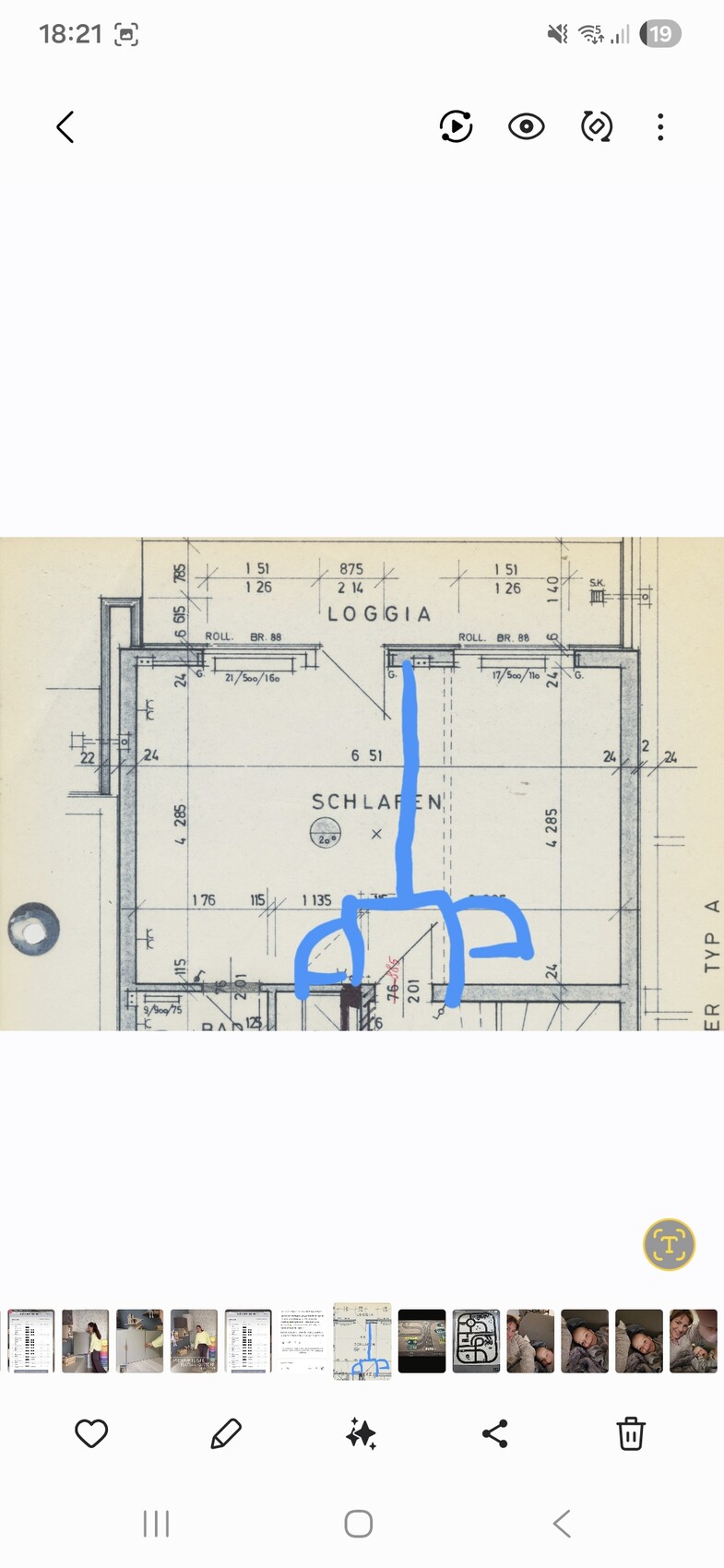 Und Nr. 2 meine "Idee", ohne "irgendwelche 3-dimensionalen Musterbildchen ohne vermaßten Grundriss".Diese sollten nur zur Frage " Wo welche Möbel stehen sollen" beitragen... Bett 2x2 Meter, Rest wird neu gekauft, vom Tischler angepasst. Die Idee: Ein Schrank im Flur würde z.b. Handtücher/Bettwäsche beherbergen, für alle Familienmitglieder zugänglich