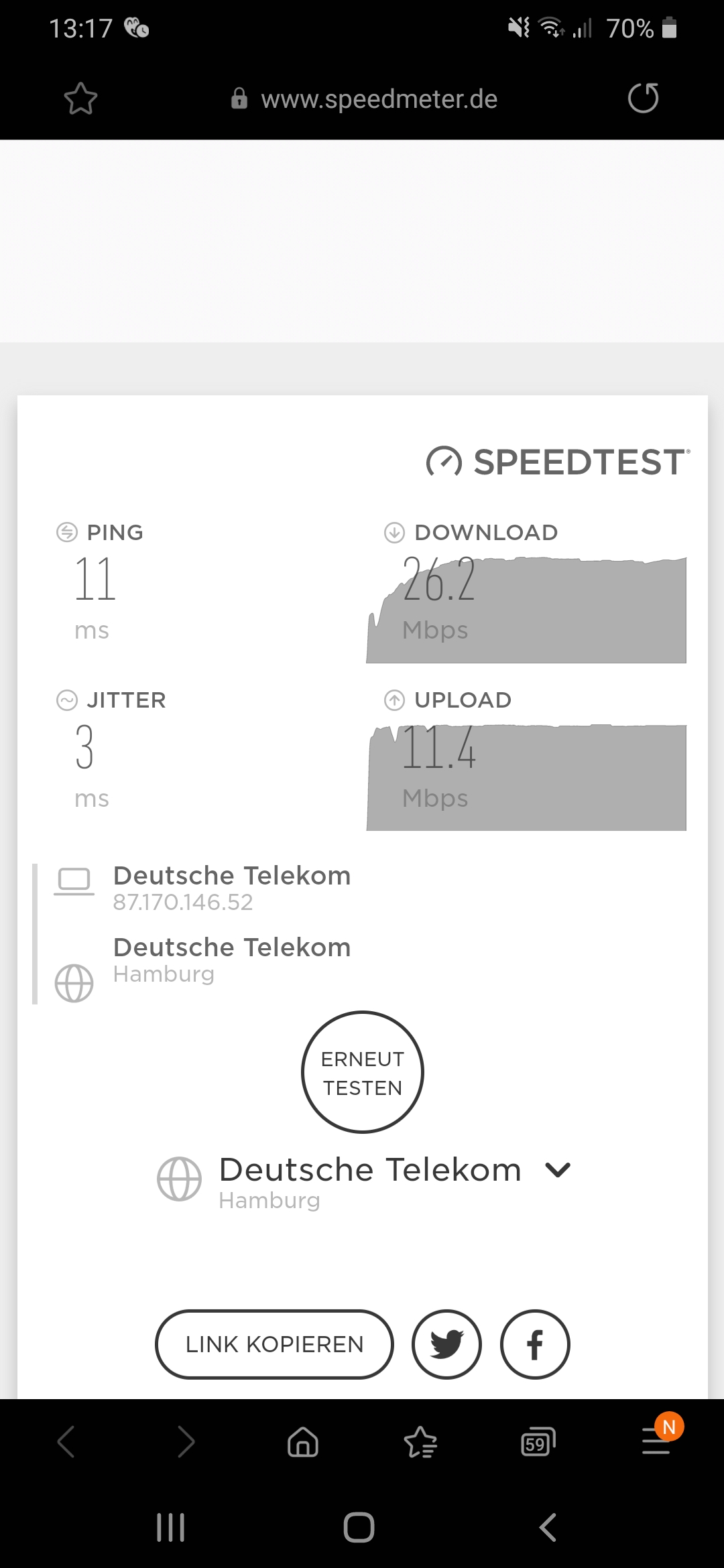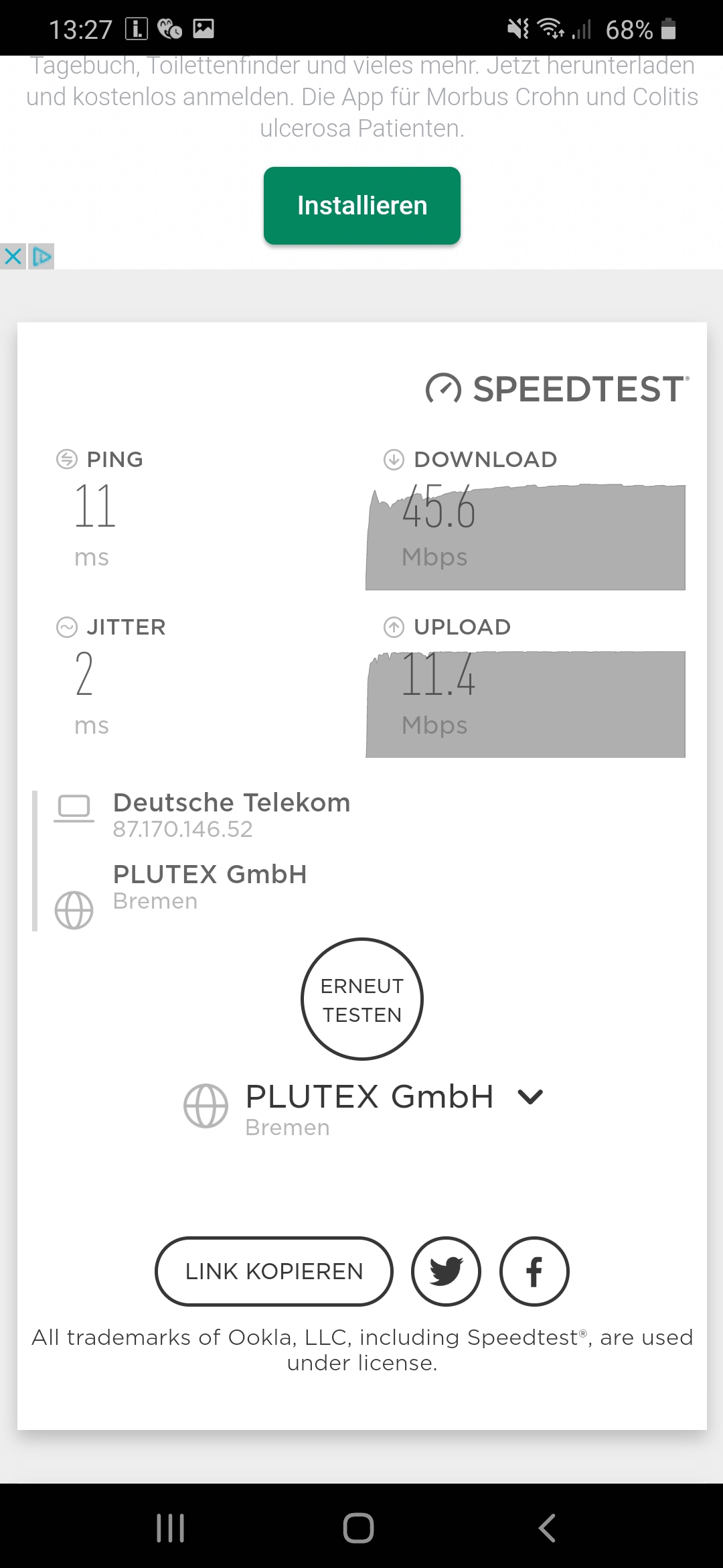 Unser Nachbar mit Kupferleitung das 10-fache davon. (Trotz Super-Vectoring und "Haste-nicht-gesehen"-toller 300Mbit Telekom Leitung)