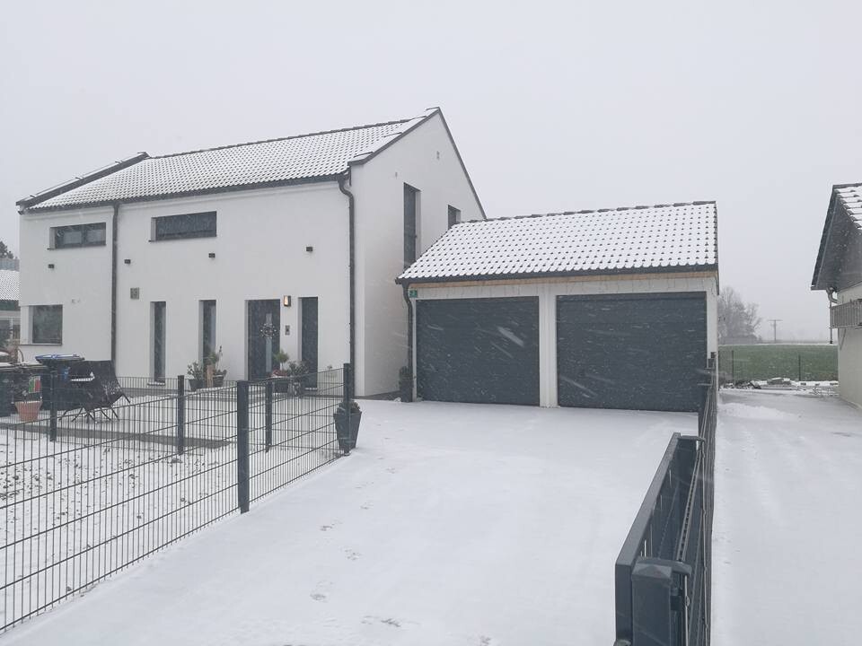 Nächstes Jahr bekommt der Sockelputz einen Anstrich, sowie das Haus da dies ein Putz-Farbgemisch ist. Ebenfalls bekommt die Garage, sprich das Satteldach einen Anstrich und Terrasse, Pergola und Eingangsüberdachung sollen auch folgen.