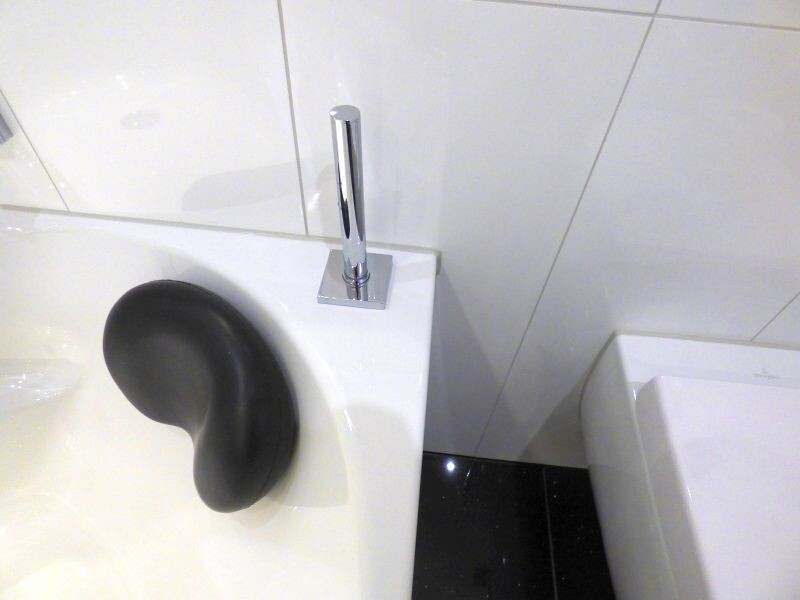 Duschkopf eignet sich hervorragend als Klorollenhalter , sehr zum Leidwesen meiner FrauAls ich nur das Bild gesehen hatte, wollte ich schon schreiben, dass die Papierrolle immer wieder Gefahr läuft, nass zu werden.