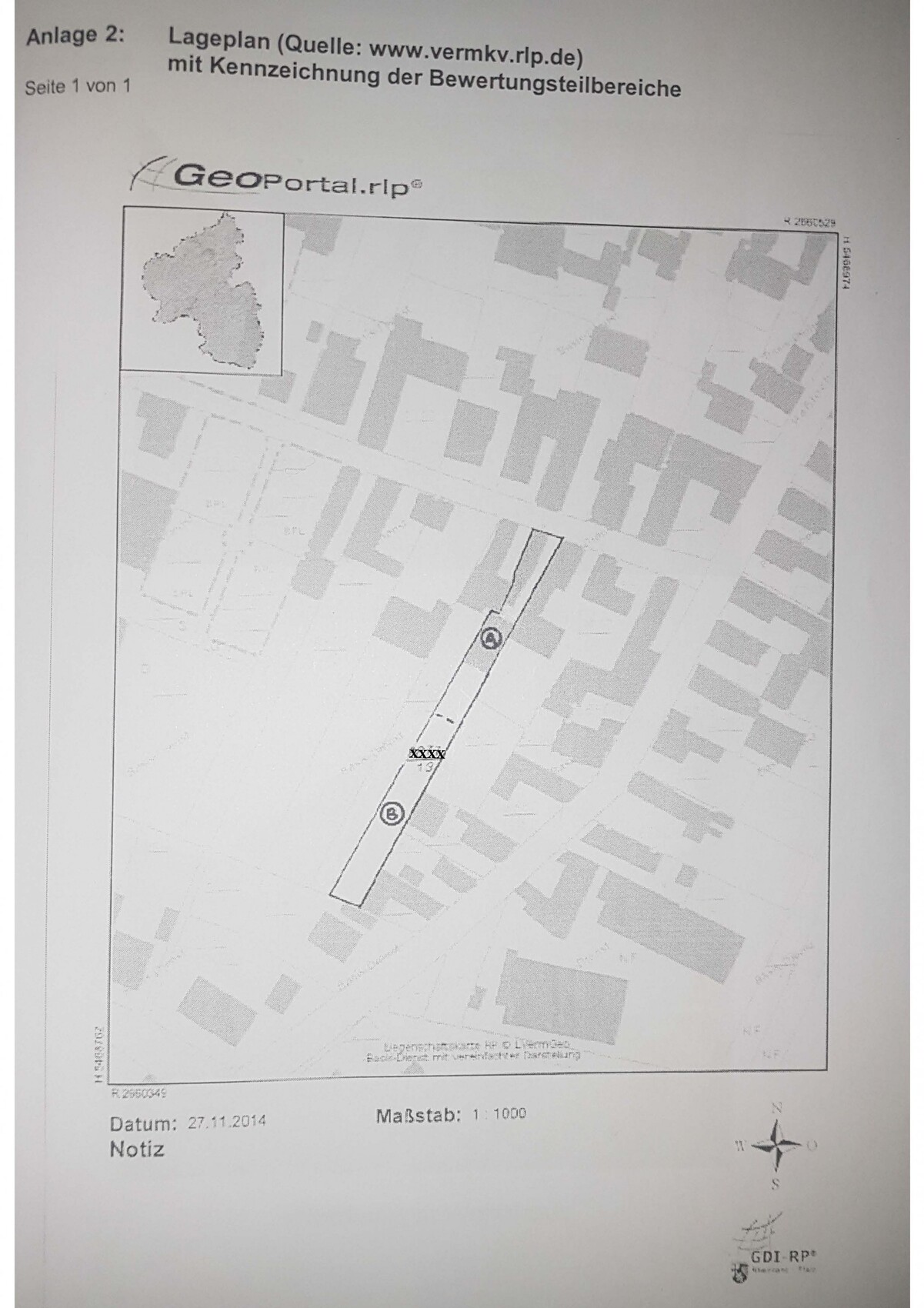 So, hier dann mal ein Lageplan des Grundstücks. Kurz zur Erklärung: