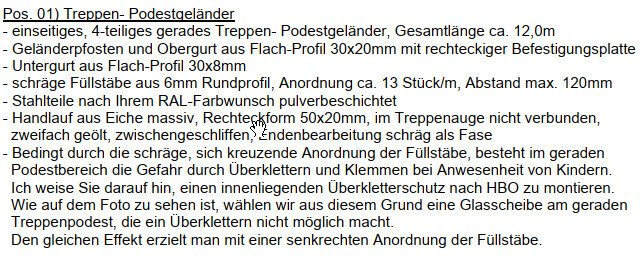 Detailierte Beschreibung von Treppen-Podestgelander mit Glasfüllung und Befestigung