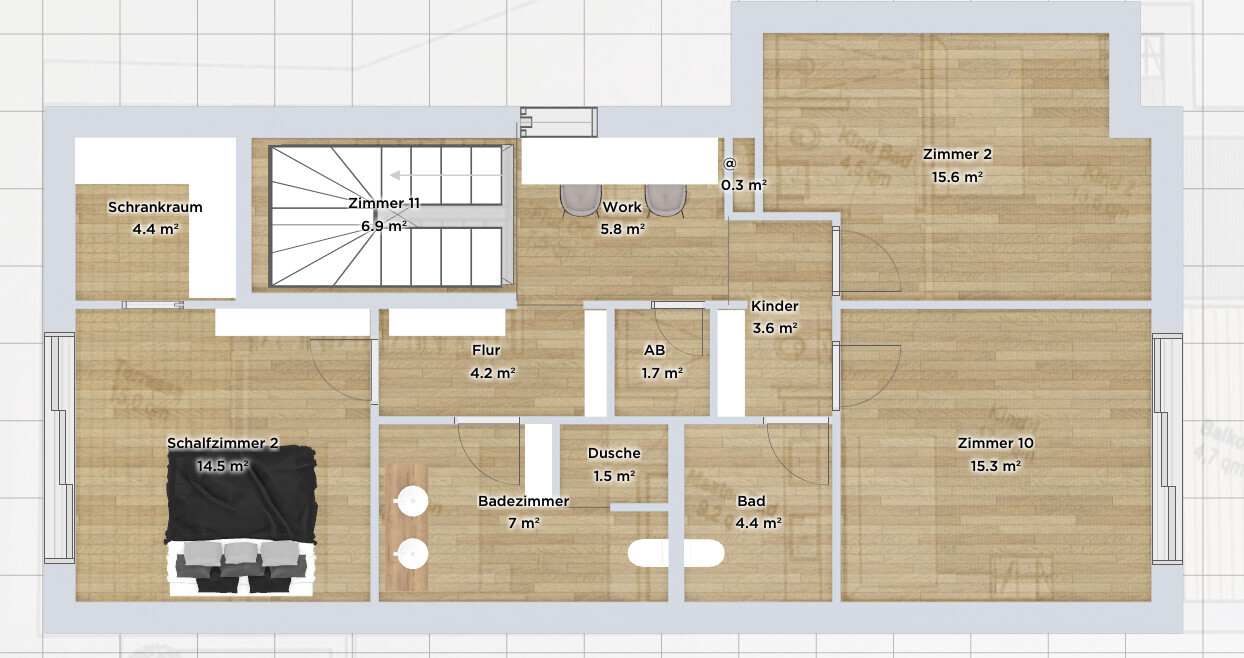 6. Durch den größeren Erker ist jetzt das zweite Kinderzimmer größer geworden und hat ein Sitzfenster erhalten