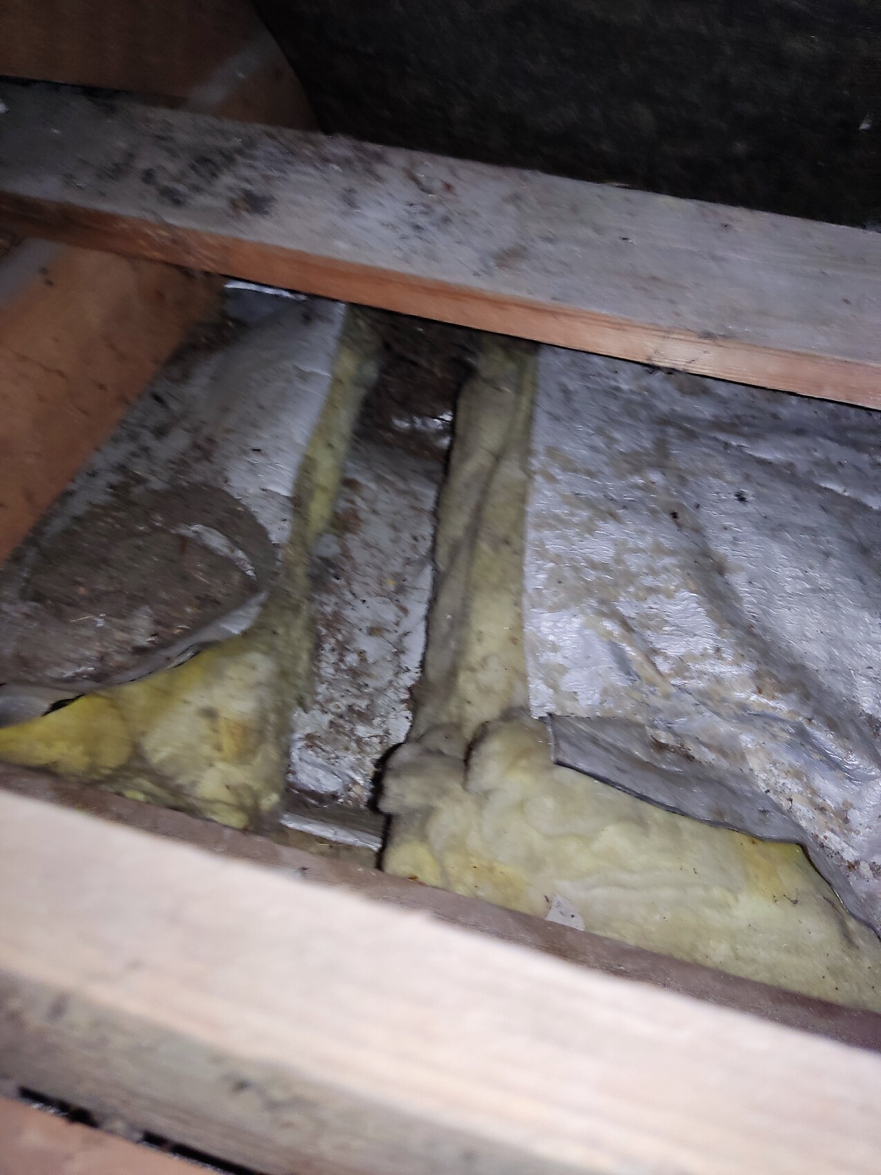 Ich habe im Dachboden den Anbaus etwas alte Dämmung entdeckt (siehe Bild). Ich denke es ist Mineralwolle (gelb mit silberner Oberfläche)