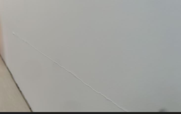 Wir hatten anfangs die Befürchtung, dass möglicherweise horizontale Risse überall im Haus aufgetreten sind, jedoch habe ich die Falte an einer kleinen Stelle geöffnet und konnte erstmal keinen Riss entdecken.