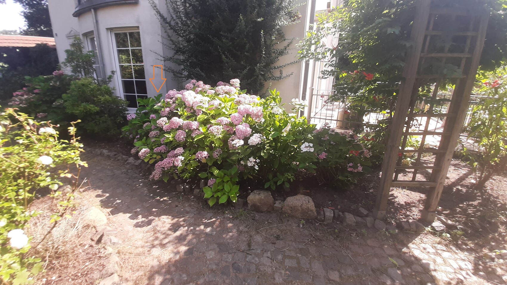 Norden und hinter Pflanzen ist dafür prädestiniert. Wird immer wieder nass und trocknet kaum ab, da keine Sonne drauf kommt. Kannst du in jedem Neubaugebiet beobachten.Tja, nun ist das aber genau die einzige Stelle an der Wand, vor der keine Pflanzen stehen. Ich füge nochmal ein Übersichtsfoto bei - die befleckte Stelle ist unter dem orangenen Pfeil. Und an allen anderen Stellen, auch an den mit Pflanzen mehr oder weniger zugestellten, ist die Wand völlig in Ordnung. Was nun?M
