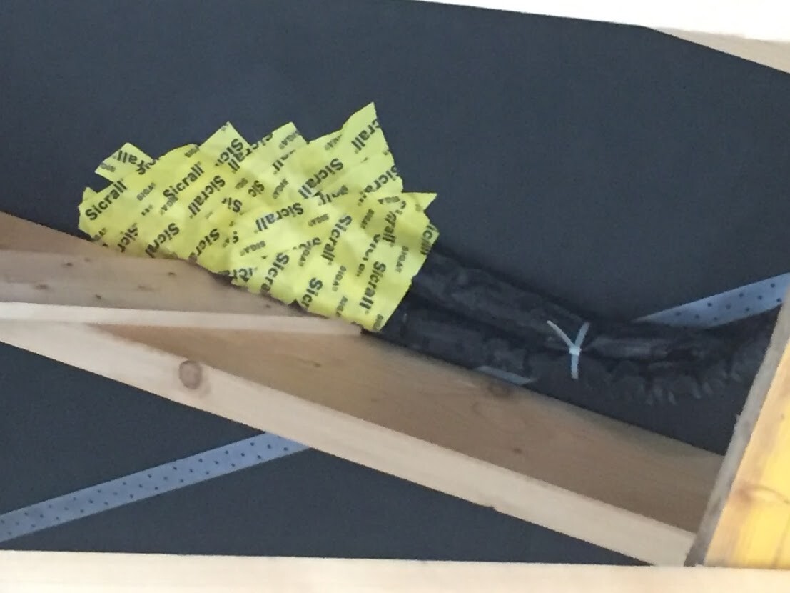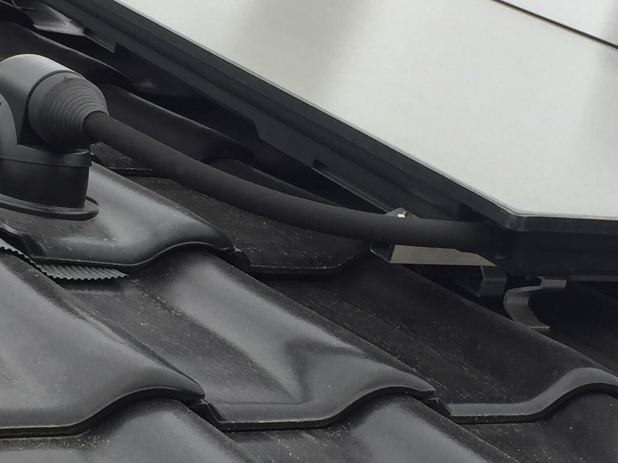 Jetzt zu meinen Fragen, müssen die Leitungen von der Solaranlage bis ins Haus nicht auch Isoliert werden?, Ist die Durchführung durch die Unterspannfolie Normgerecht?, ist die Befestigung der Solarleitungen mit Kabelbändern am Dachstuhl normgerecht?