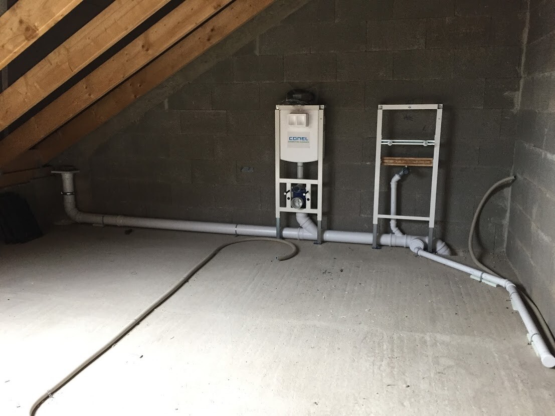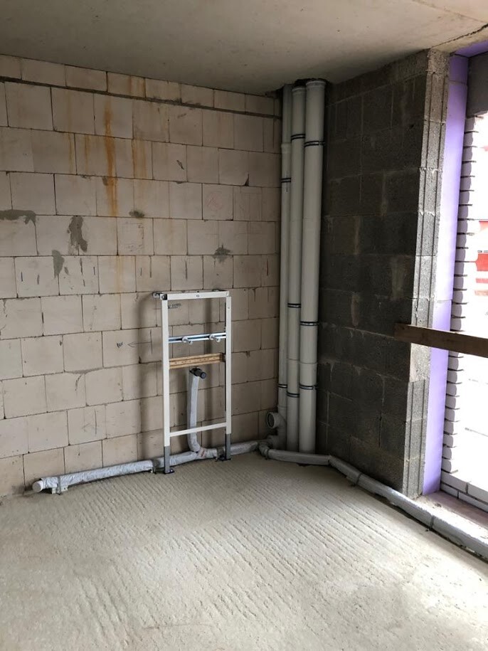 Jetzt hat er plötzlich ohne mein wissen schon die Abflussrohre verlegt.