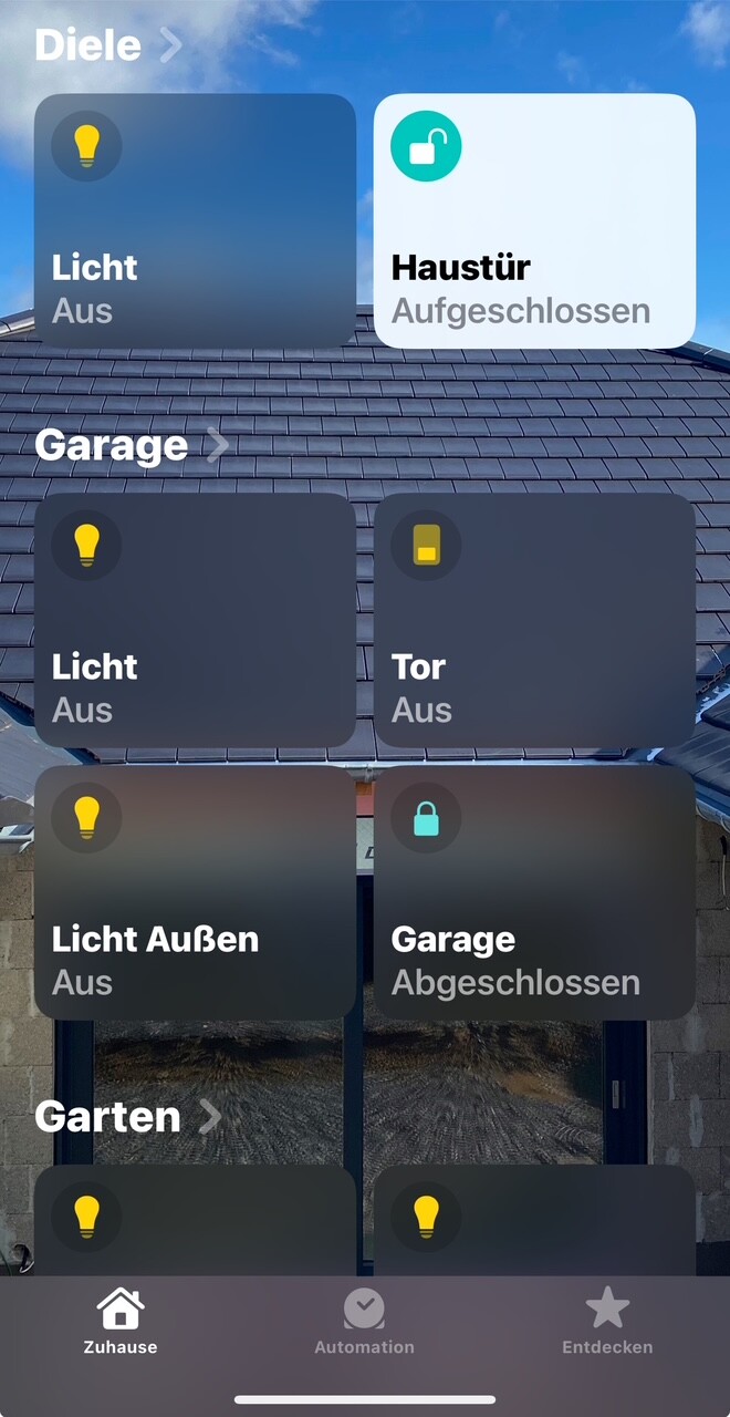 In der App erkennst du dann auch den genauen Zustand des Schlosses. Hier als Beispiel Diele und Garage.