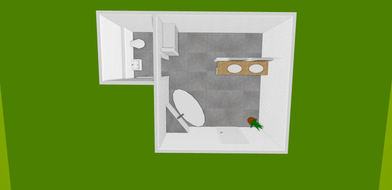 Hier kannst Du planlinks halbhohe Schränke planen, darüber Licht in Reihe, Wanne sollte noch etwas nach planrechts, direkt ggü der Waschtische. Ablage links und rechts der Wanne.