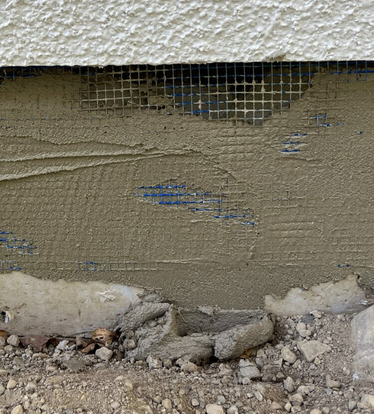 bei unserem Fertighaus (ohne Keller) wird gerade der Sockelputz gemacht. In der Sockeldämmung waren ein paar Löcher. Gut möglich, dass diese Schäden bei der Hausaufstellung entstanden sind (ich hänge auch noch zwei Bilder von der Bodenplatte an, bevor das Haus errichtet wurde). Die meisten Löcher waren recht klein und auch nicht sehr tief, aber zwei Löcher waren doch recht groß und da war die Dämmung wirklich komplett durch. Die Tiefbaufirma hatte uns eigentlich versprochen, die zwei Löcher noch zu stopfen.