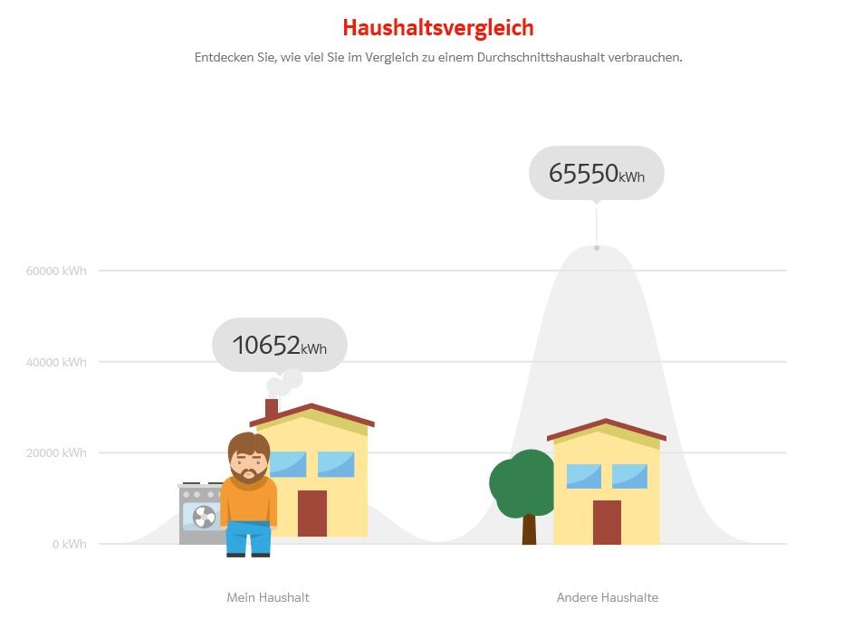 Das es sich nicht um einen 100m² Haus handelt, sieht man an den Zahlen, viel interessanter, ist der Vergleich zu ähnlichen Haushalten.