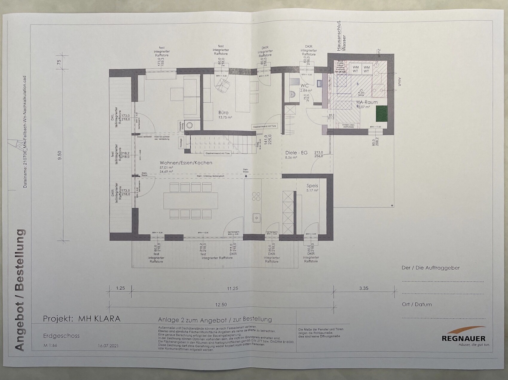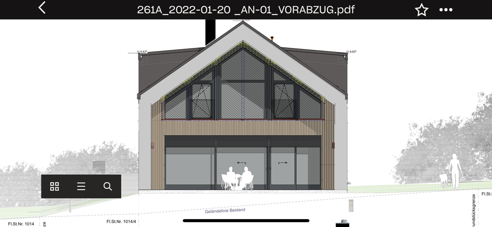 Mir ist grad noch eingefallen, dass ich mir damals die Pläne vom Regnauer Haus zeigen hab lassen und für den Fall der Fälle, hab ich die auch direkt mal abfotografiert :p. Hier ist zwar nicht direkt der Dachüberstand zu sehen, aber die Tiefe des Balkons ist mit 1,25m vermaßt, wenn man sich nun nochmal das Bild von außen dazu anschaut sollte das auch grob der Dachüberstand sein… 😎