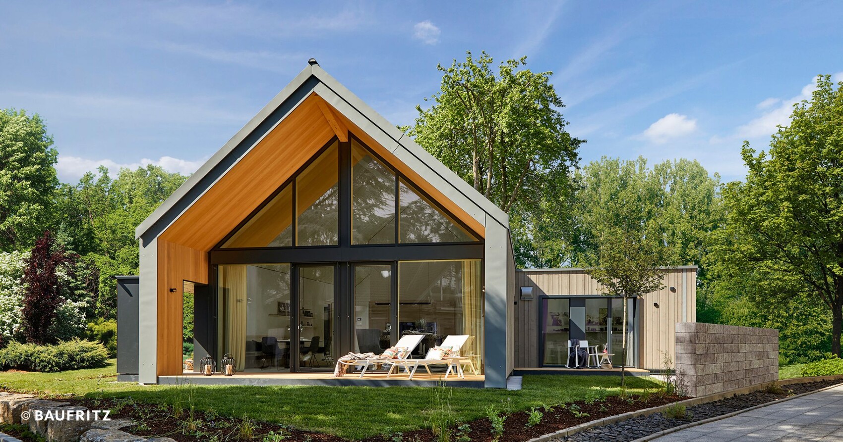 Und um keine einseitige Werbung zu machen hier noch das Baufritz Musterhaus, ebenfalls in Fellbach 😀. Ähnlicher Anblick hatte ich noch im Kopf und auch auf der Homepage zu finden.