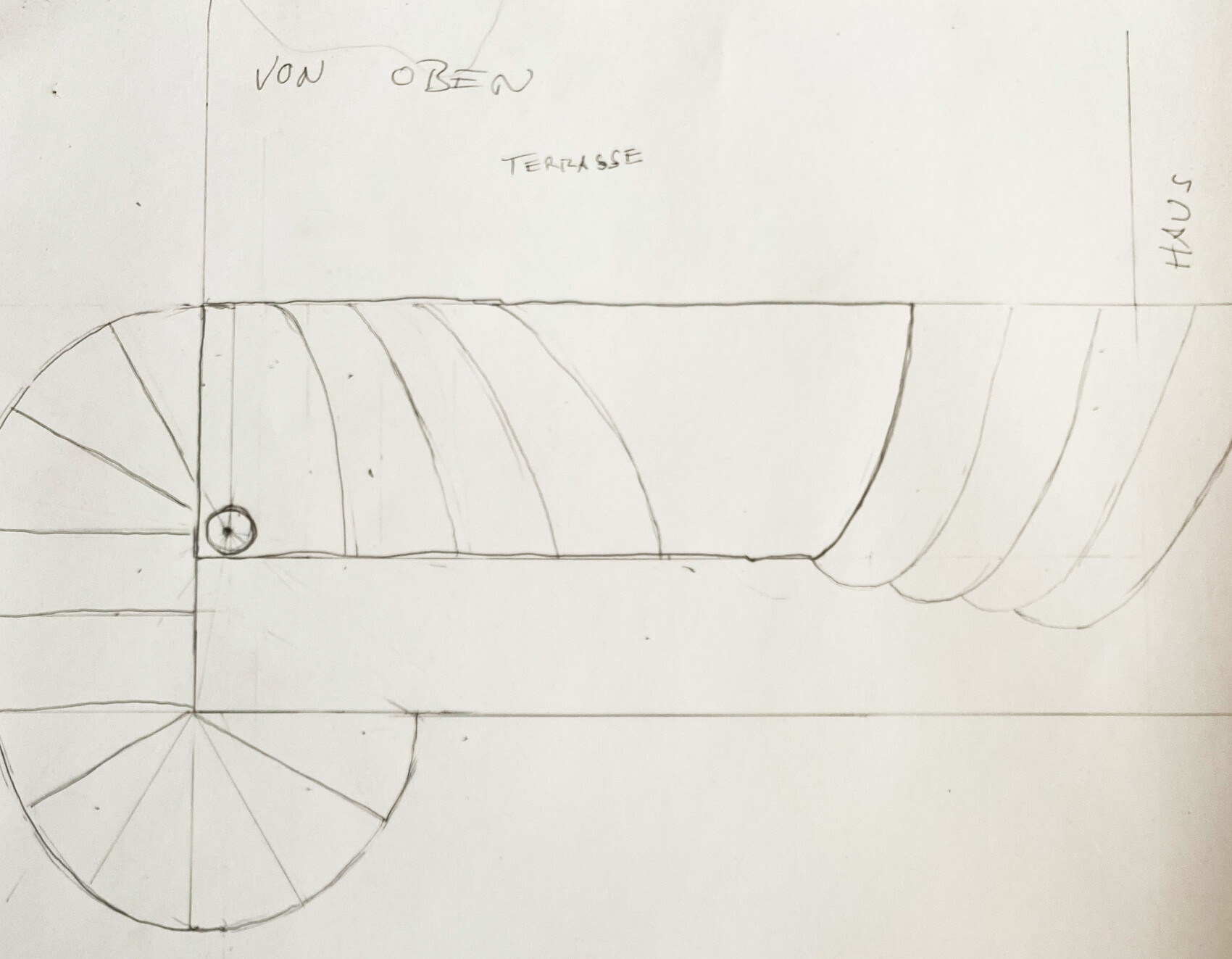 Um von meinem (noch nicht vorhandenen ) neuen Balkon-Abschnitt in den Garten zu kommen, möchte ich eine Treppe nach unten "wendeln".